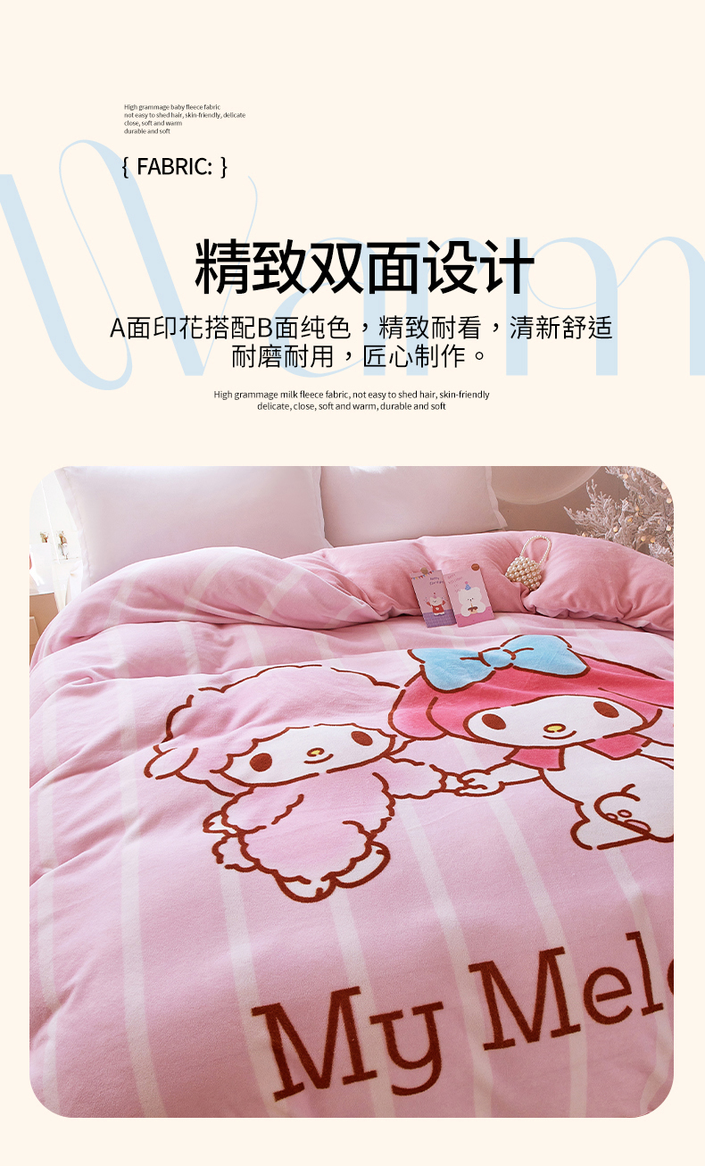 商品名称:蘭菲家纺 2025新款三丽欧牛奶绒套件系列单品被套 美乐比爱