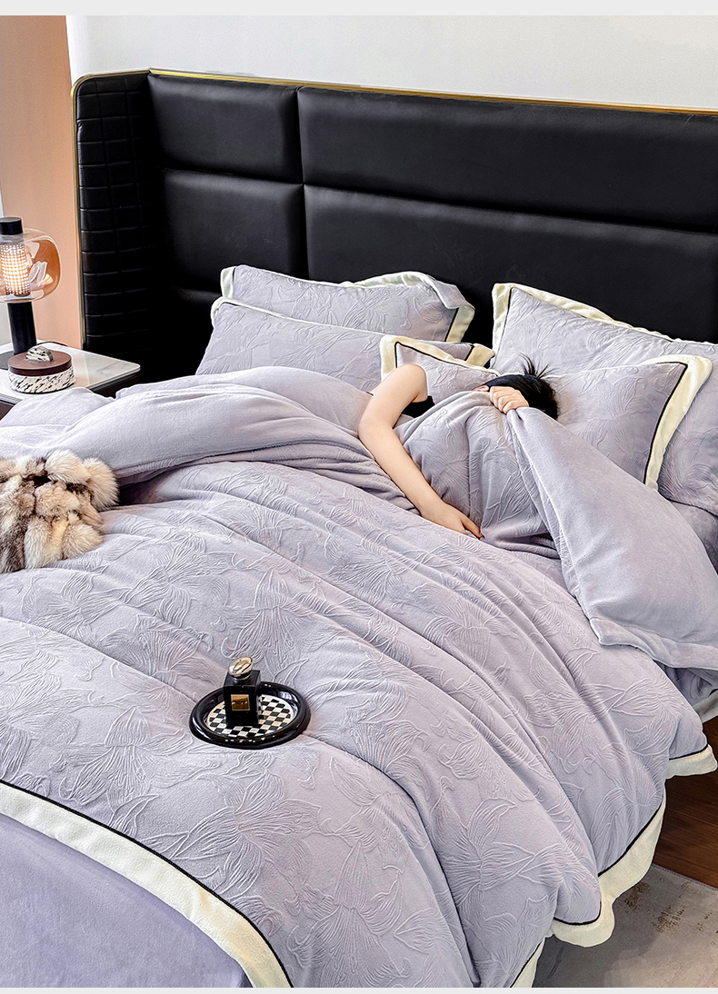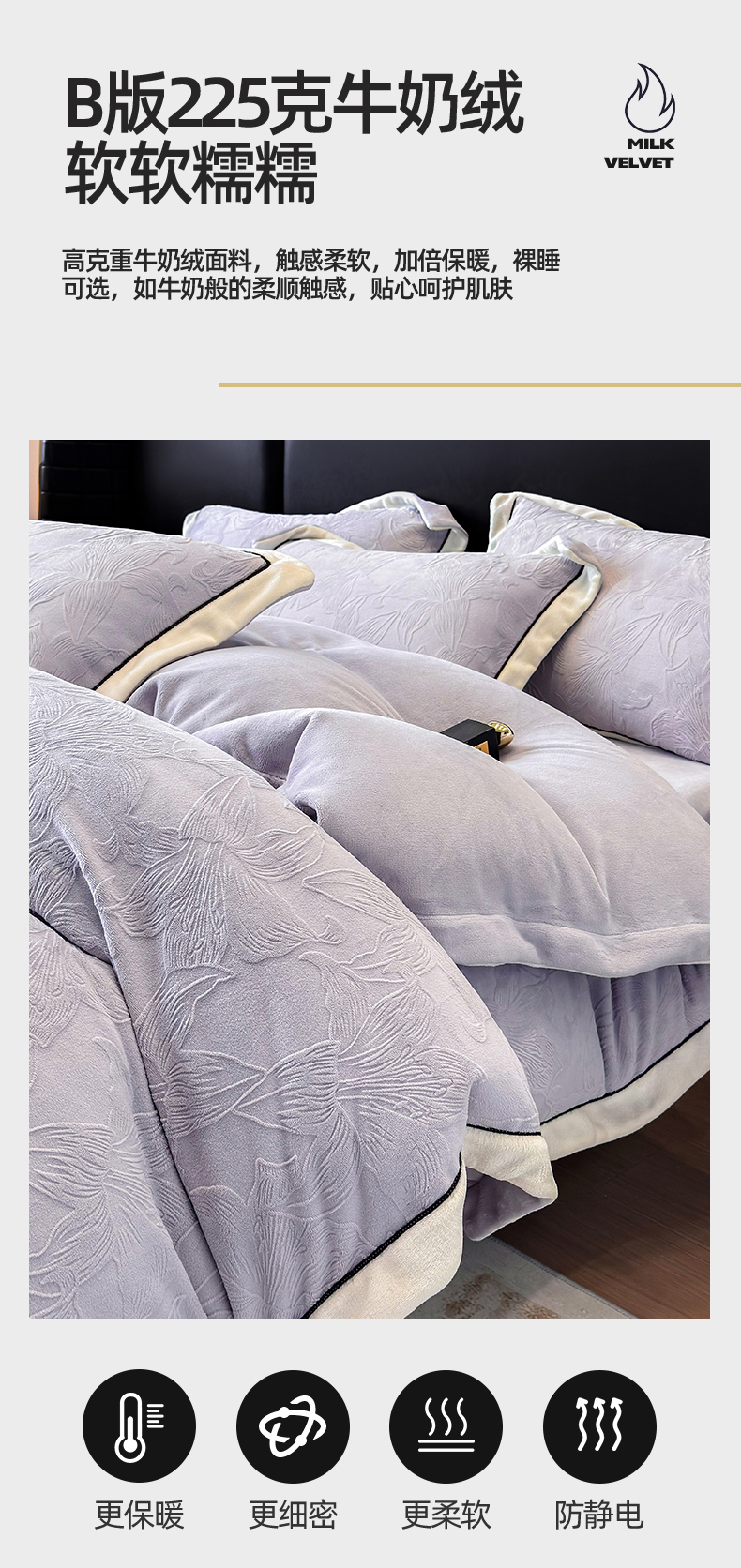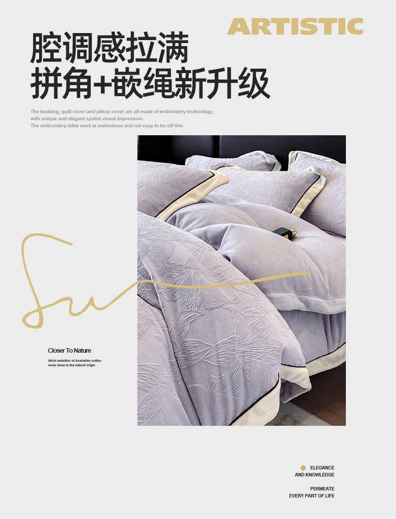 (总)大米家居 2025新款牛奶绒织带轻奢工艺款四件套-卡夫系列,卡夫-香槟,卡夫-暖白,卡夫-魅紫,卡夫-柔粉,卡夫-湛蓝,卡夫-棕咖