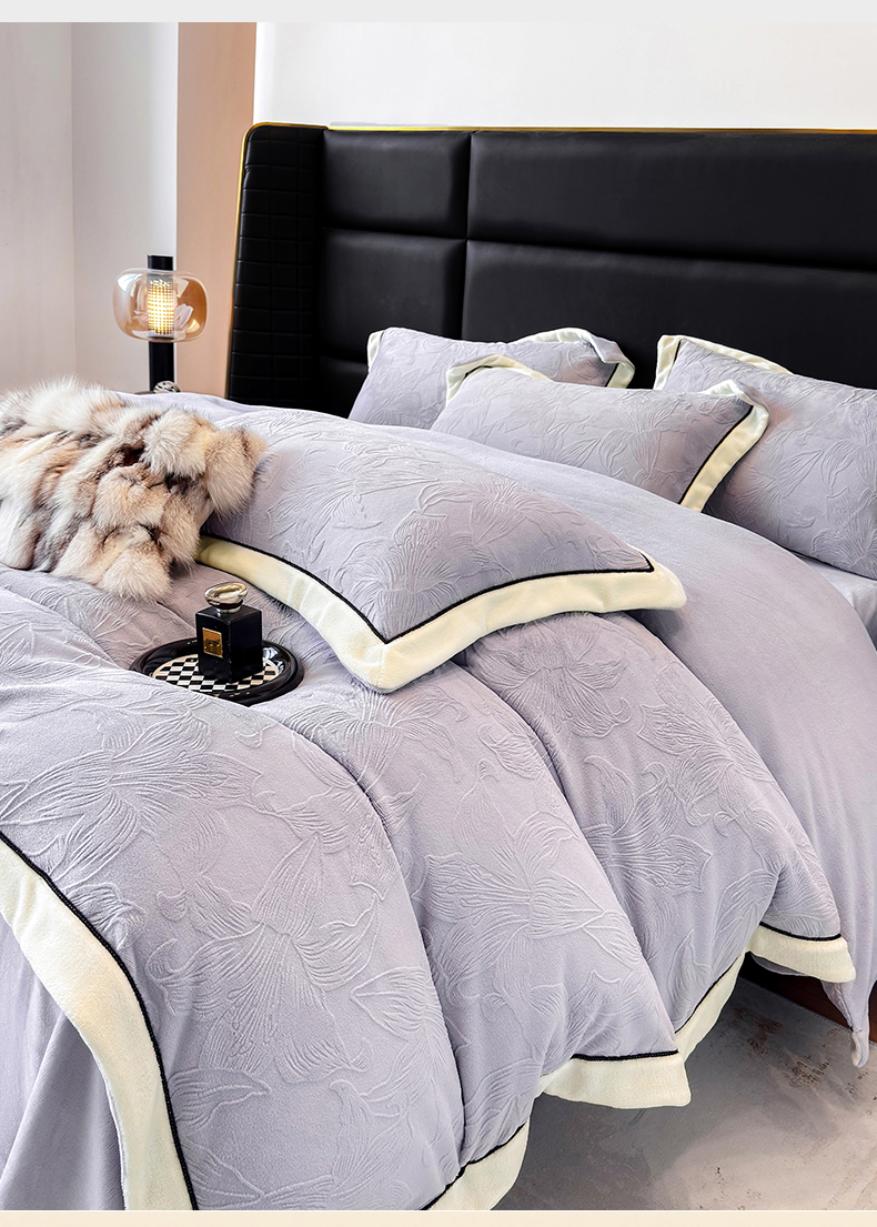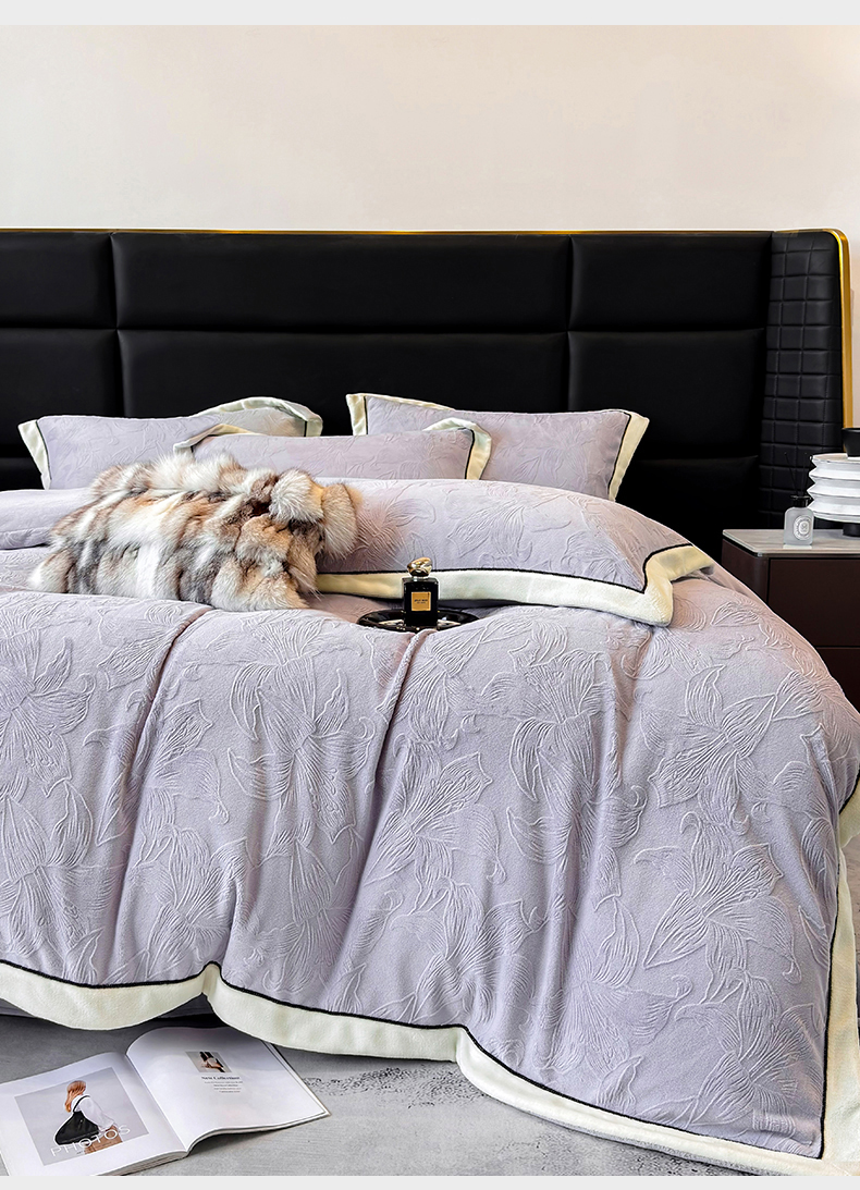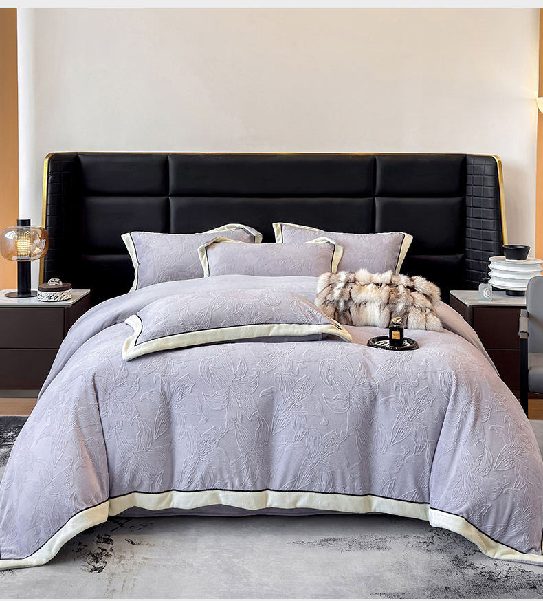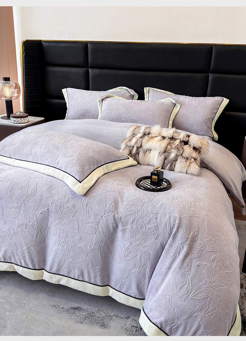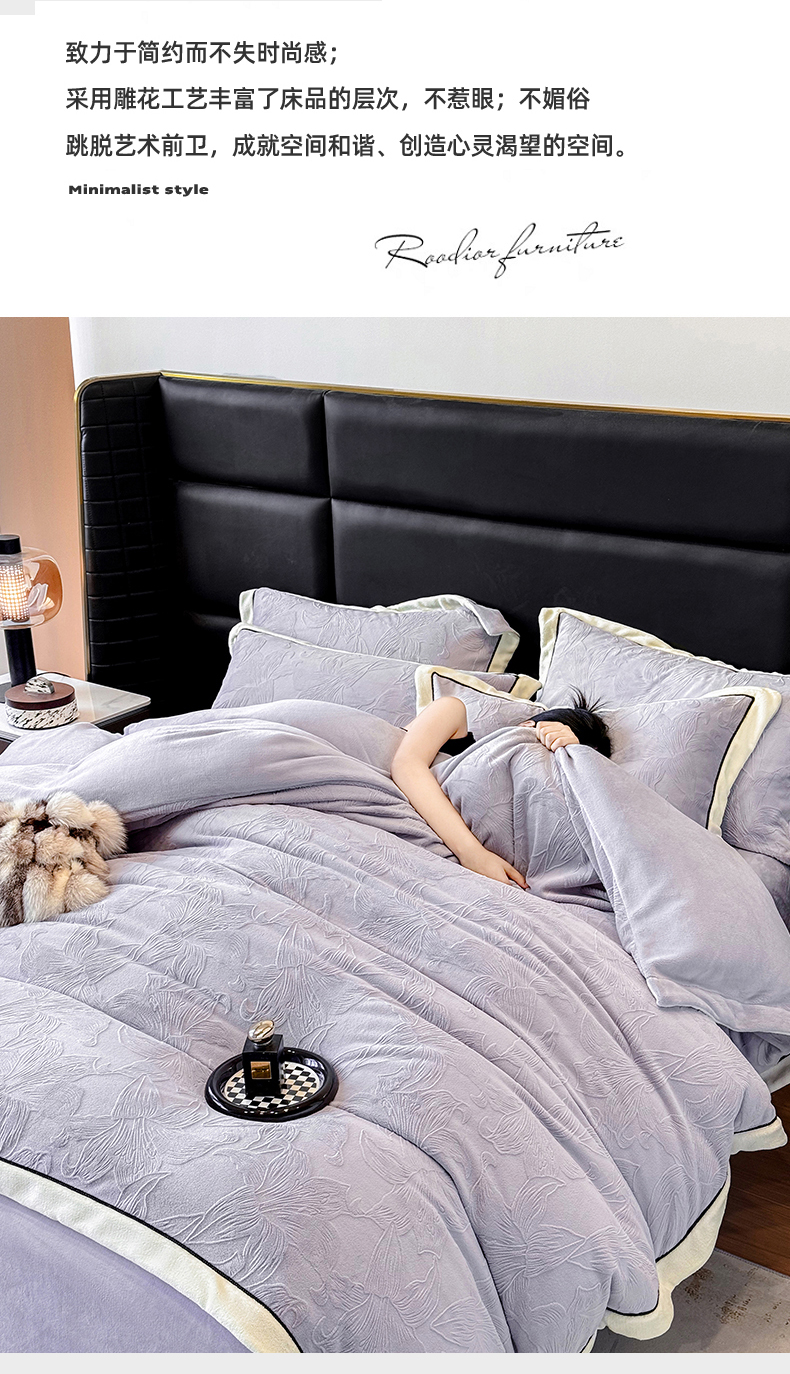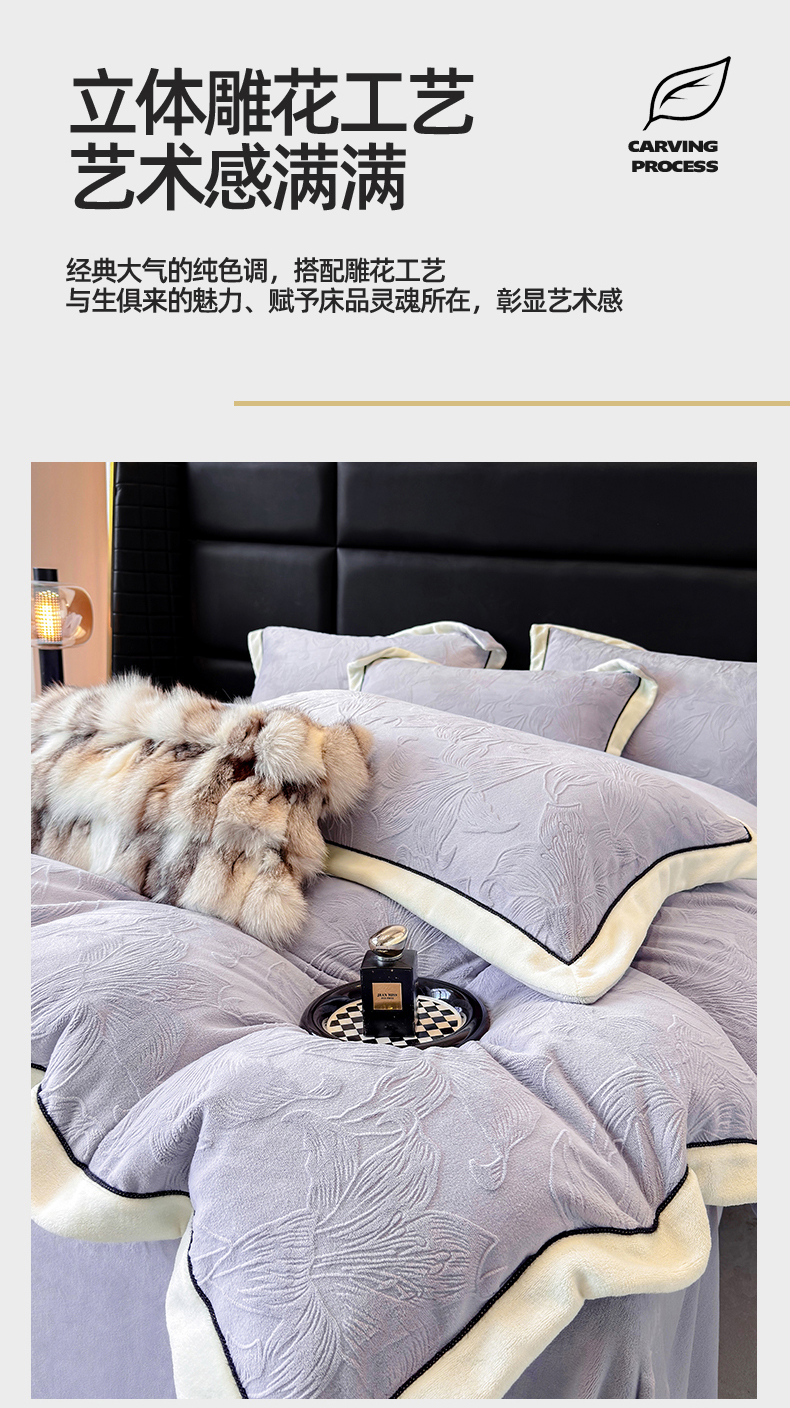 (总)大米家居 2025新款雕花绒拼角嵌绳系列四件套