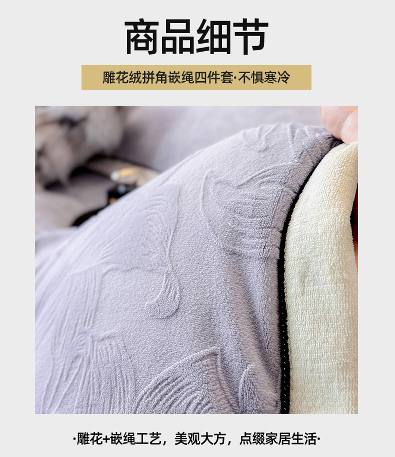 商品名称:(总)大米家居 2025新款雕花绒拼角嵌绳系列四件套