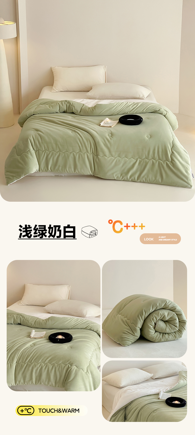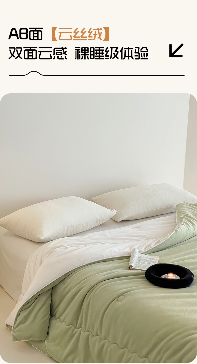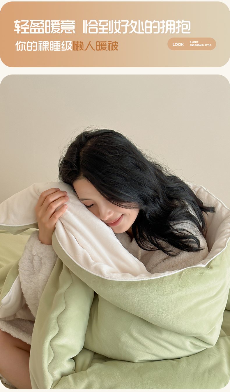 商品名称:三味舒屋 2025新款舒芙蕾双面云丝绒懒人被(所有券叠加后不低于198/248元) 被子被芯 浅绿奶白
