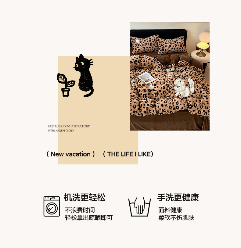 商品名称:梵克保罗 2025秋冬新款兔毛绒豹纹印花绣花款牛奶绒四件套 豹纹布偶猫-浅灰