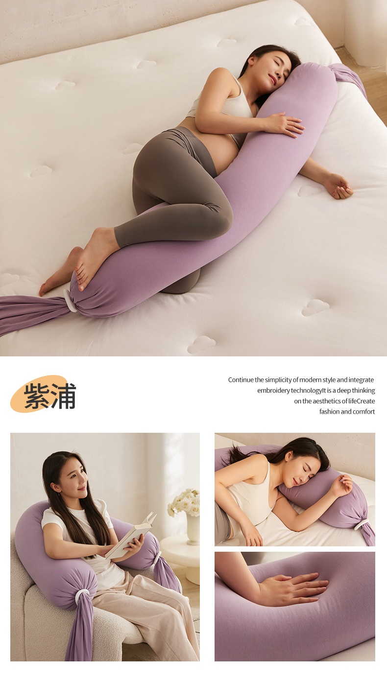 头等舱 2025新款全棉氨纶针织A类孕妇 护腰 侧睡 靠垫 安抚枕 抱抱 夹腿多功能枕(模特图)配包装 紫浦