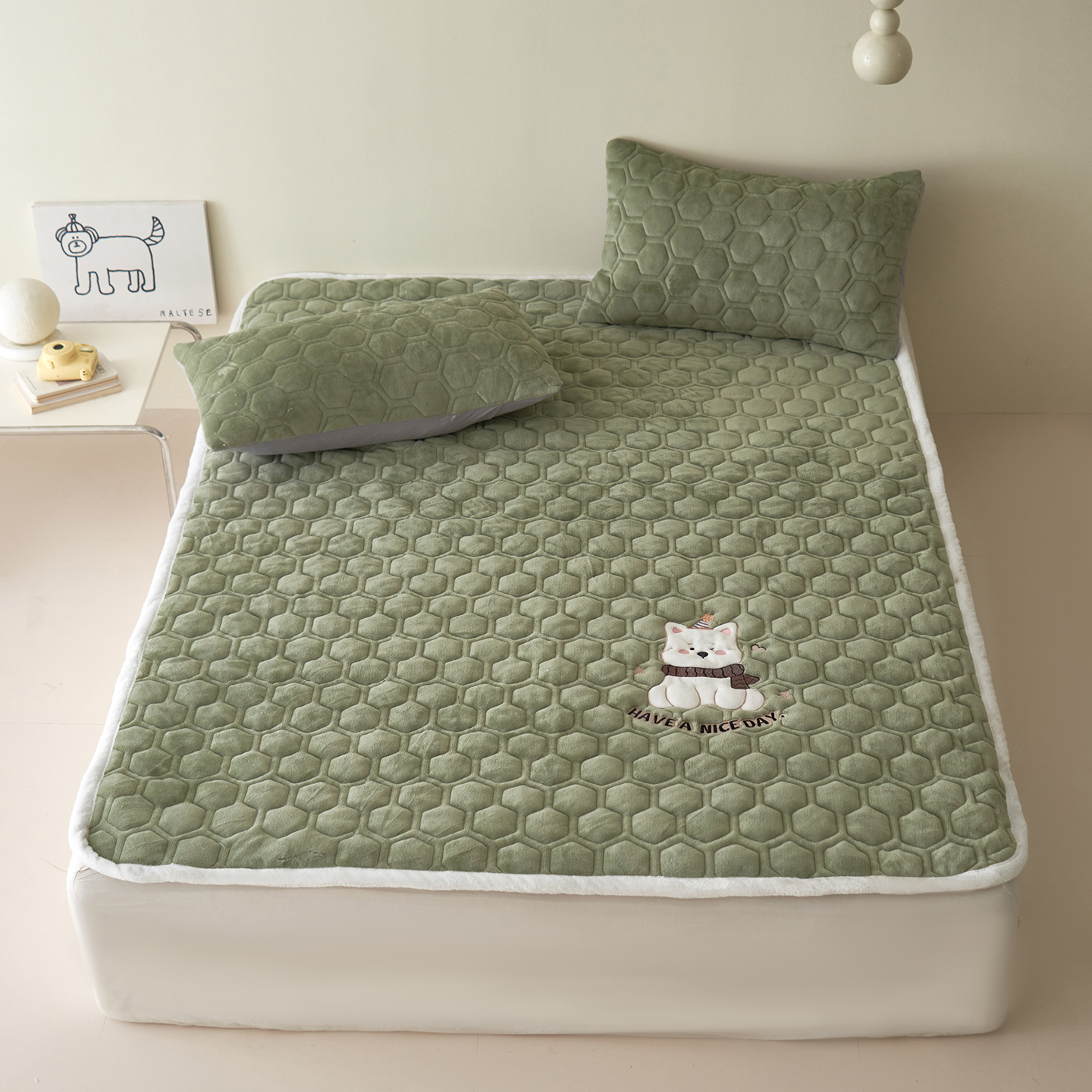 商品名称:永旺家纺 2025新款高克重牛奶绒床垫床褥-卡通狗狗系列 卡通狗狗-绿色