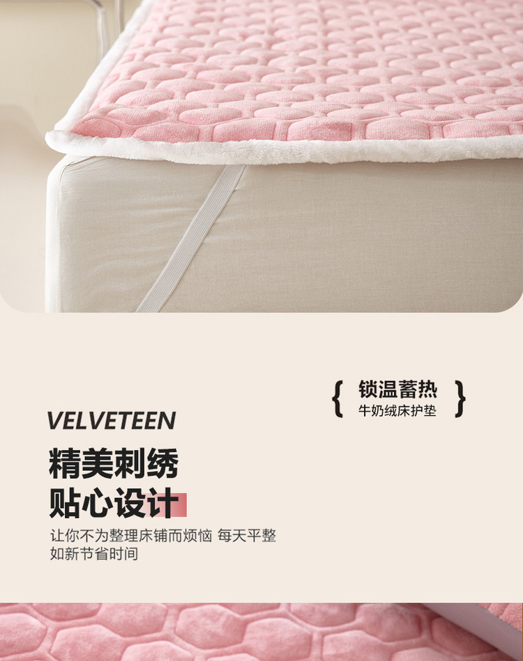 (总)2025新款纯色牛奶绒贴布绣床垫床褥子床褥垫,灰色,黄色,绿色,蓝色,粉色