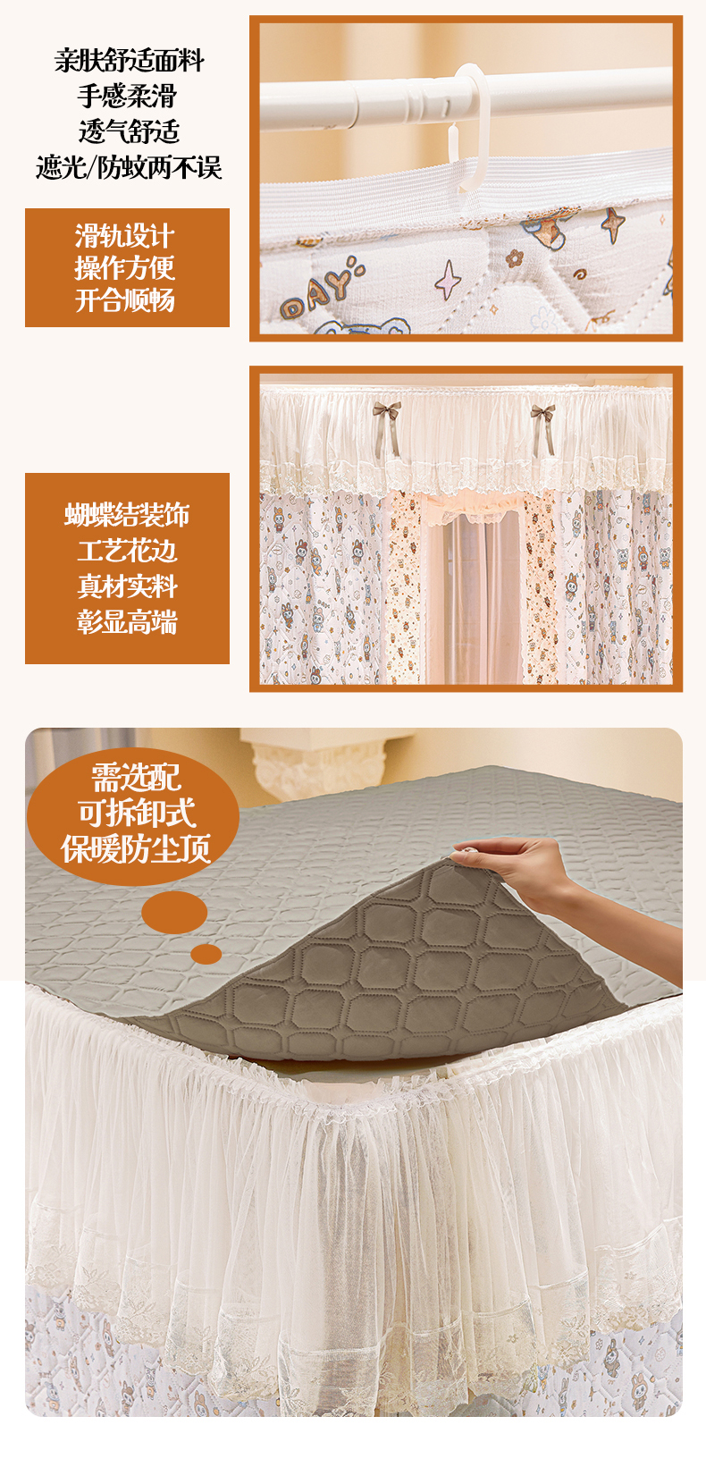 (总)夏彩 2025新款五面保暖亲肤面料坐床拉链四季款蚊帐-88632,星愿熊,拉贝贝,羽飞舞,支架,保暖顶-灰色,保暖顶-粉色,保暖顶-绿色