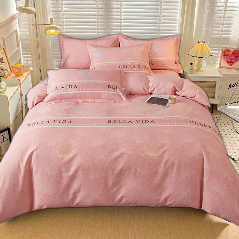木易家居2026新款全棉磨毛印花四件套 杉杉恋曲-粉