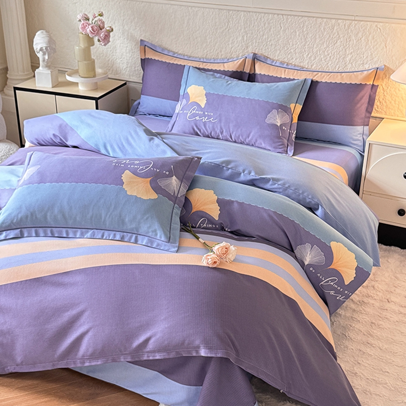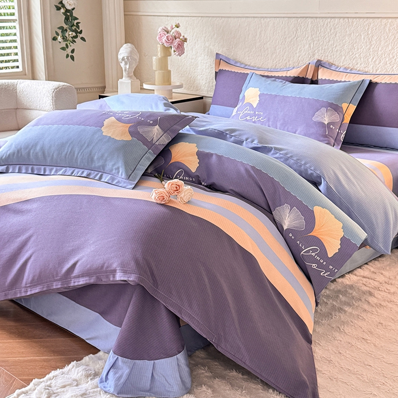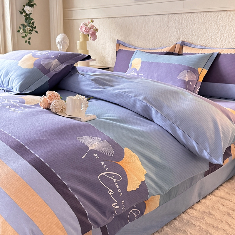 木易家居2026新款全棉磨毛印花四件套 若雨千叶
