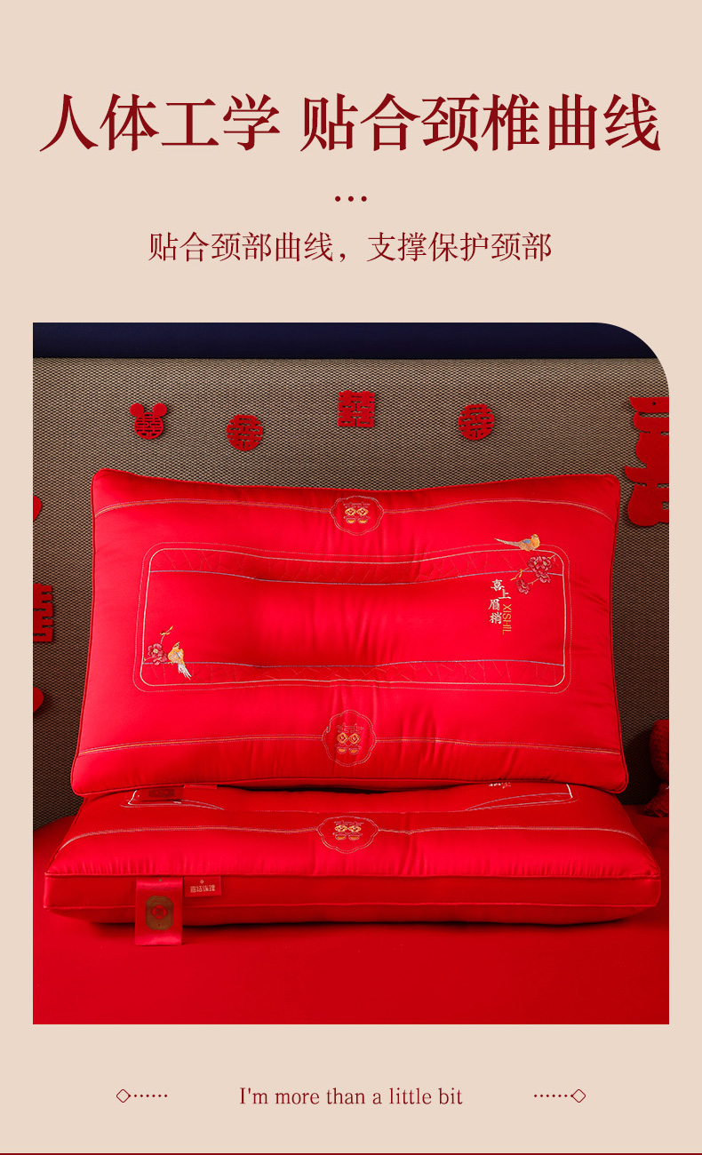 商品名称:织布人 2025新款枕芯全棉刺绣大红喜事婚庆送礼结婚专用护颈定型枕头枕芯 婚庆枕-天作之合