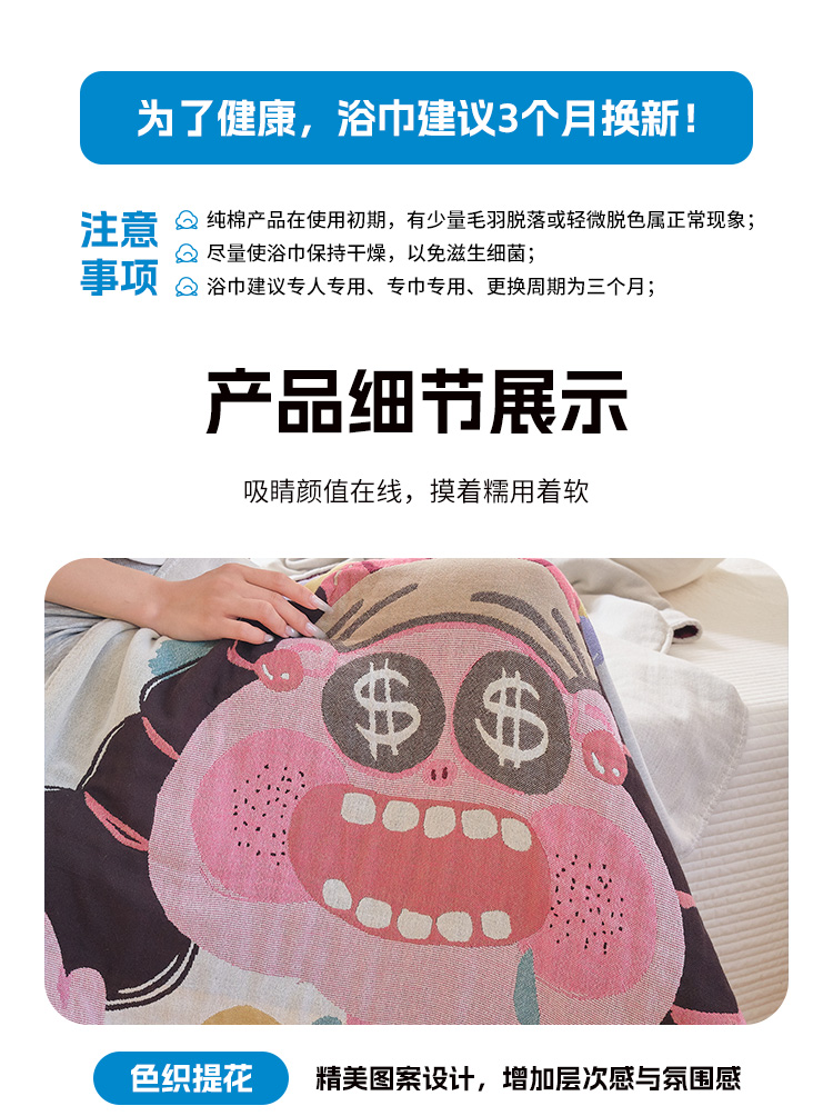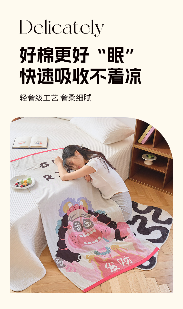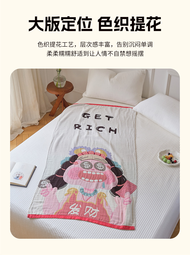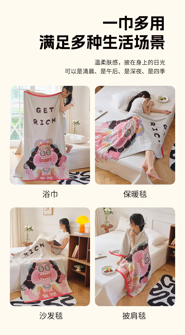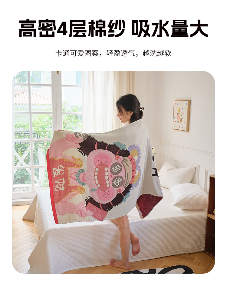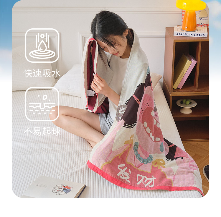 当前位置: 91家纺网 > 商品网购 > 居家日用 > 毛巾/浴巾/浴袍 > 浴巾 > 沐瑟家纺 2025新款卡通A类全棉四层纱布浴巾加大毛巾-第二组 发财女孩 80*160cm浴巾/条