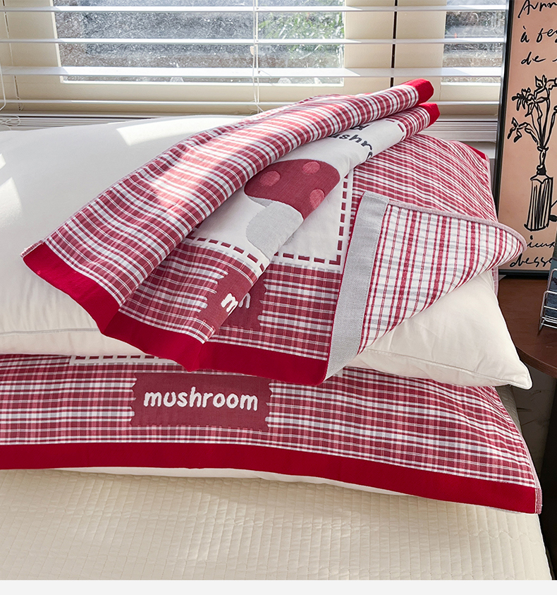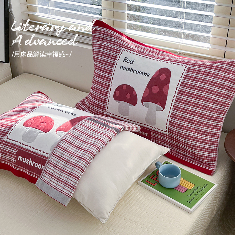 美宜家 2026新款全棉细纱加厚萌系治愈风枕巾 条纹蘑菇一只