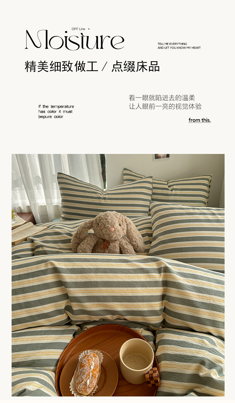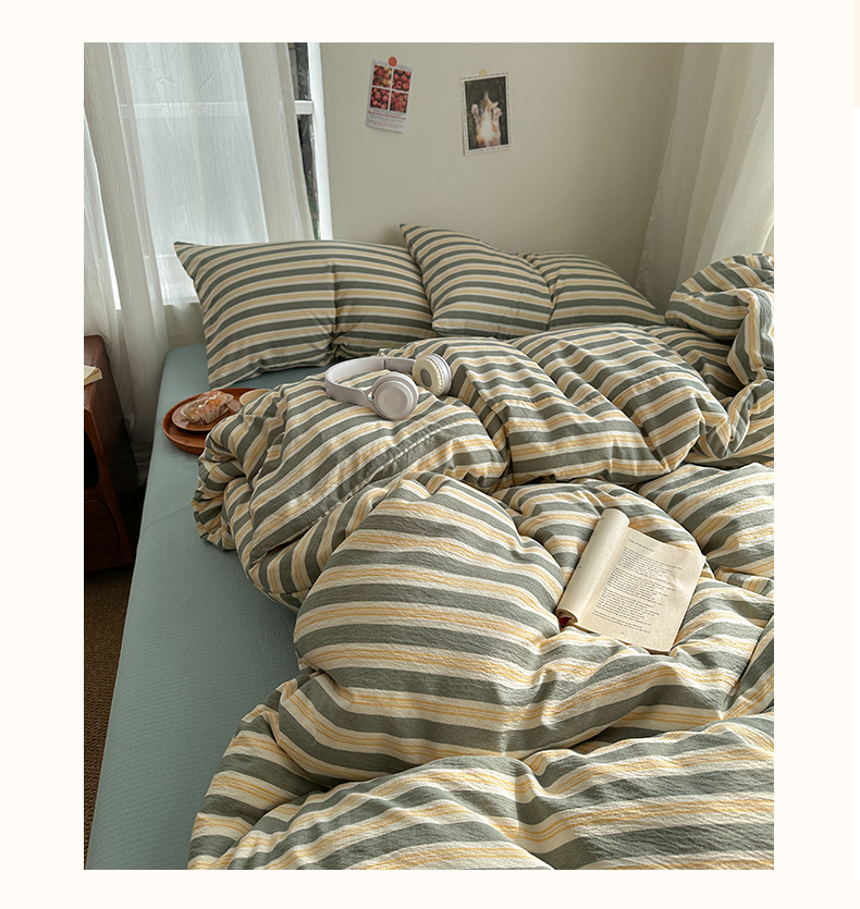 当前位置: 91家纺网 > 商品网购 > 床品套件 > 四件套 > 双层纱四件套 > 思诺羽床笠 2026新款亲肤云朵双层纱无印风水洗棉三件套四件套 黄绿条