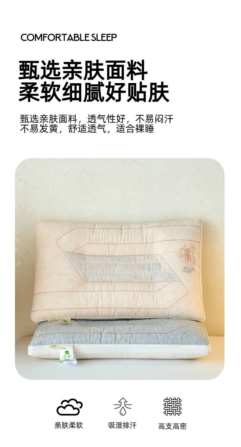 商品名称:帝诺妮枕芯坊 2025新款亲肤决明子枕 枕头枕芯 灰色