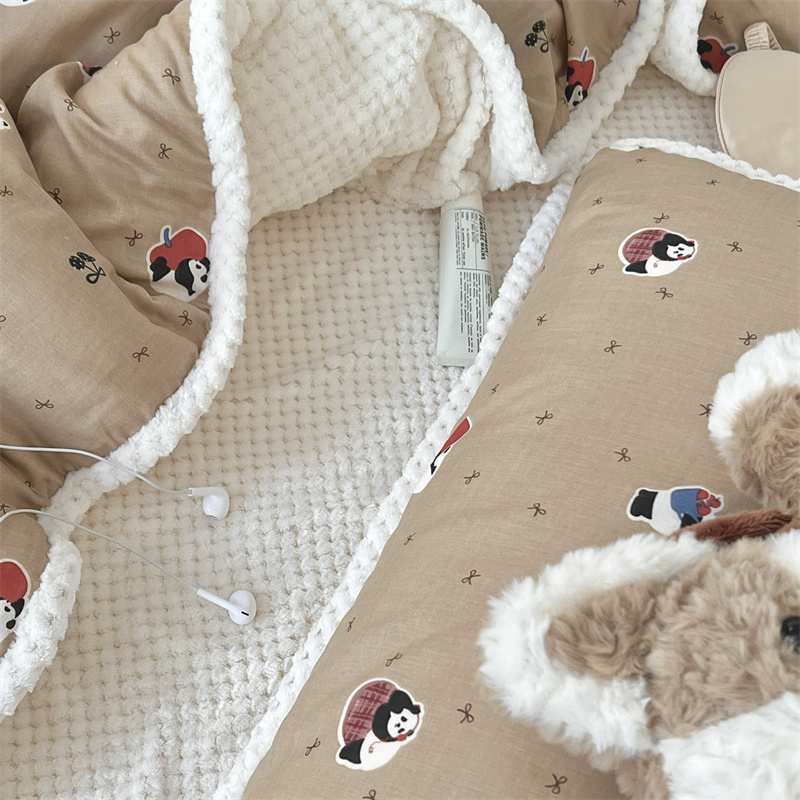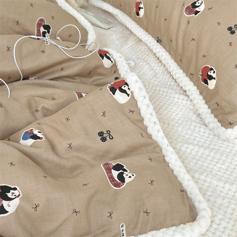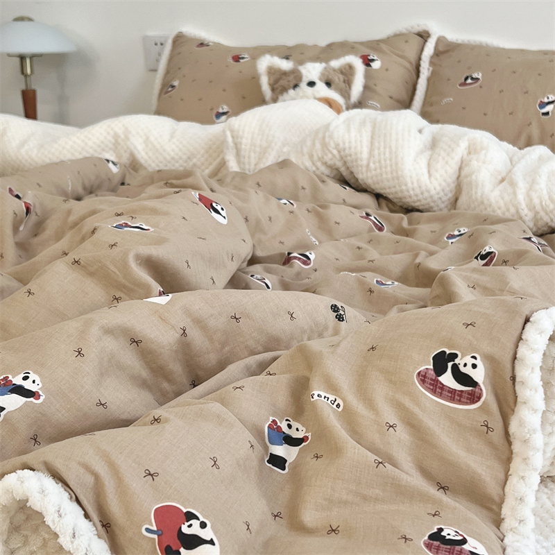 荣轩 2025秋冬必备新品棉加绒华夫格提花绒工艺款四件套(铺床版)熊猫果果
