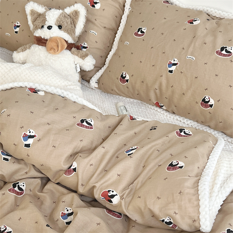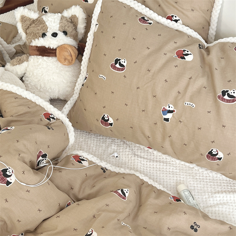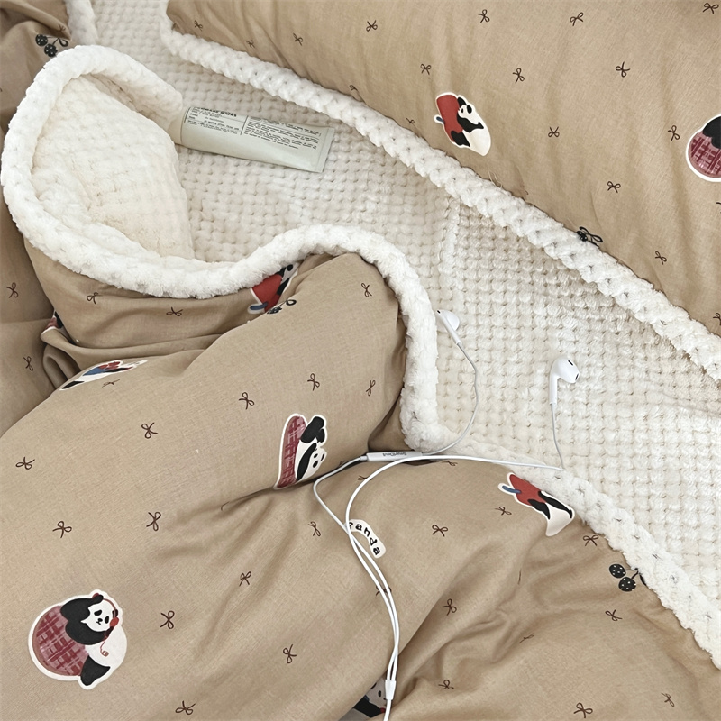 商品名称:荣轩 2025秋冬必备新品棉加绒华夫格提花绒工艺款四件套(铺床版)熊猫果果