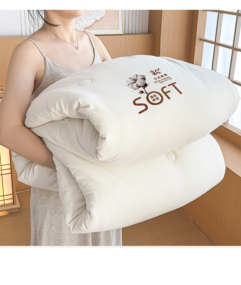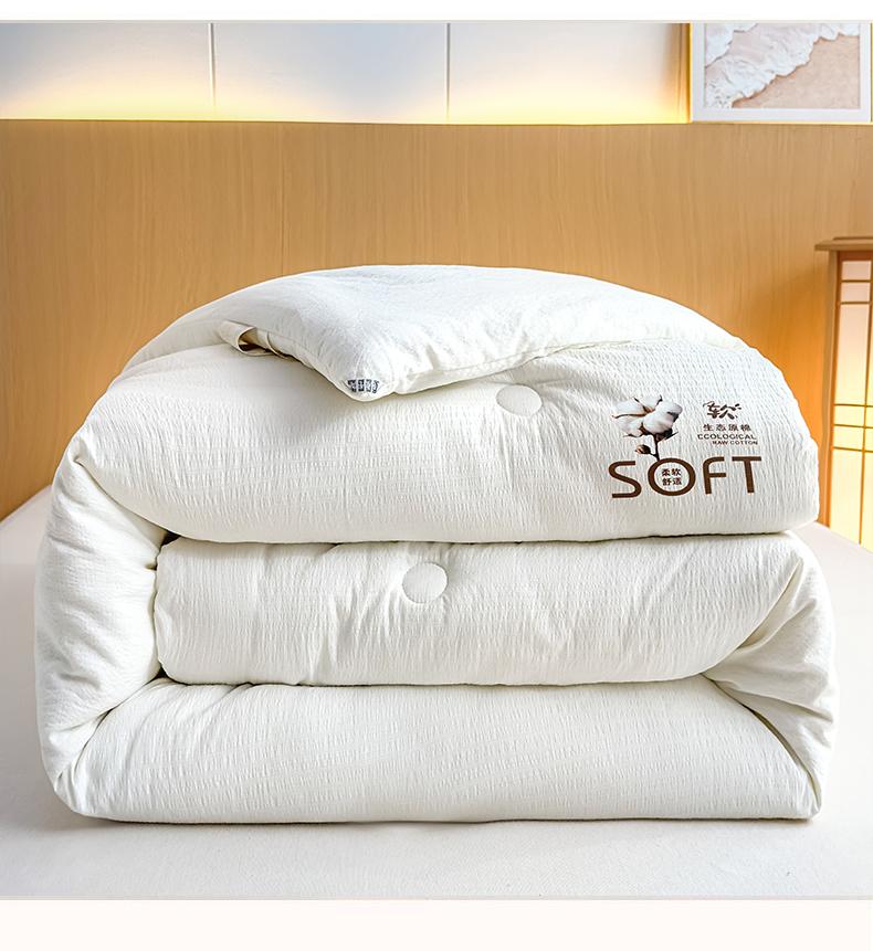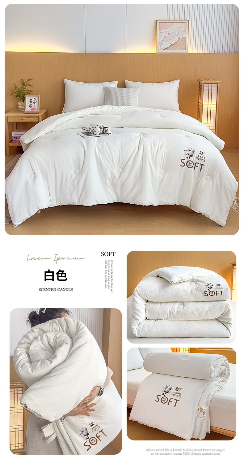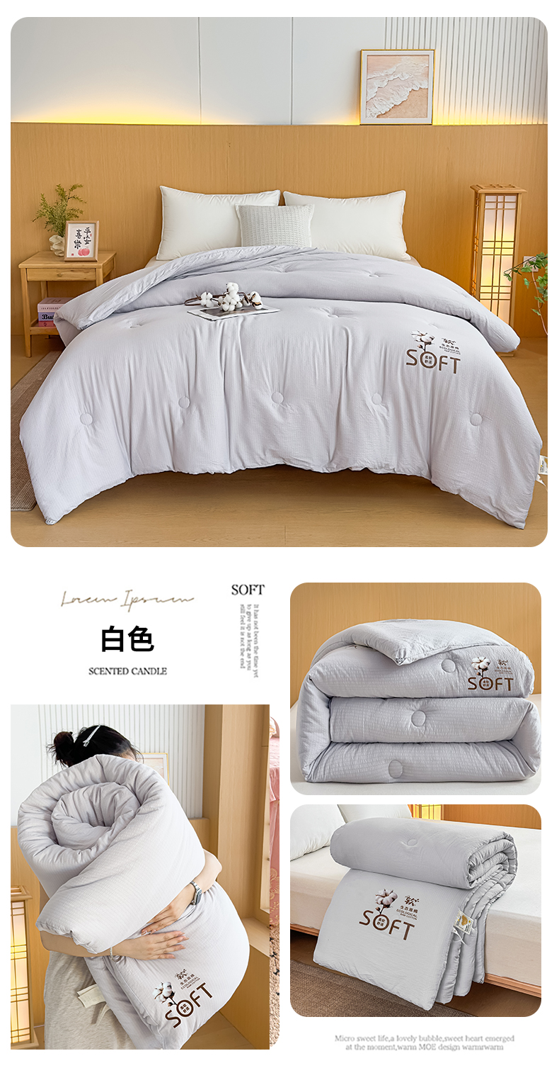 • 91家纺网 家纺一手货源 找家纺 (总)默忆 2025新款A类木棉皱皱纱棉花被被子被芯,白色,粉色,灰色,蓝色