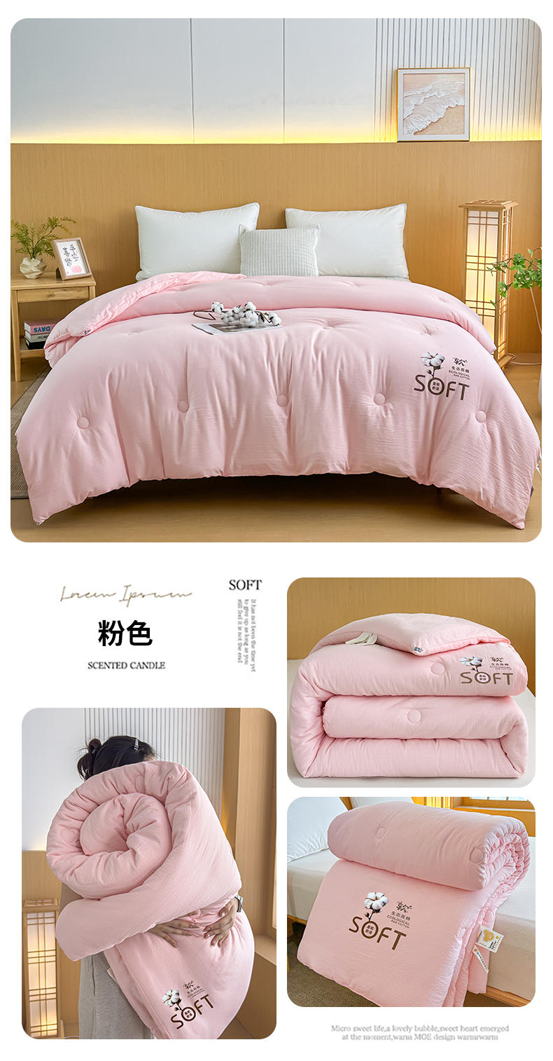 • 91家纺网 家纺一手货源 找家纺 默忆 2025新款A类木棉皱皱纱棉花被被子被芯 粉色
