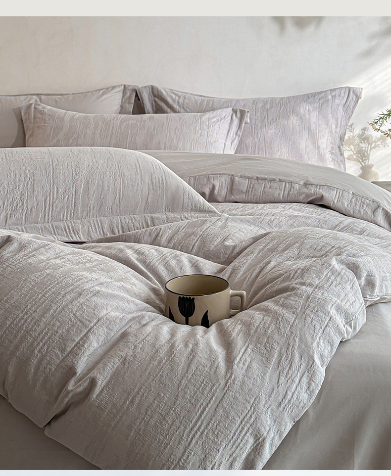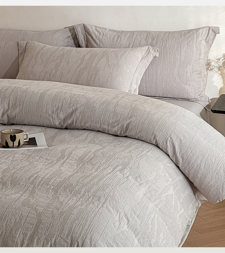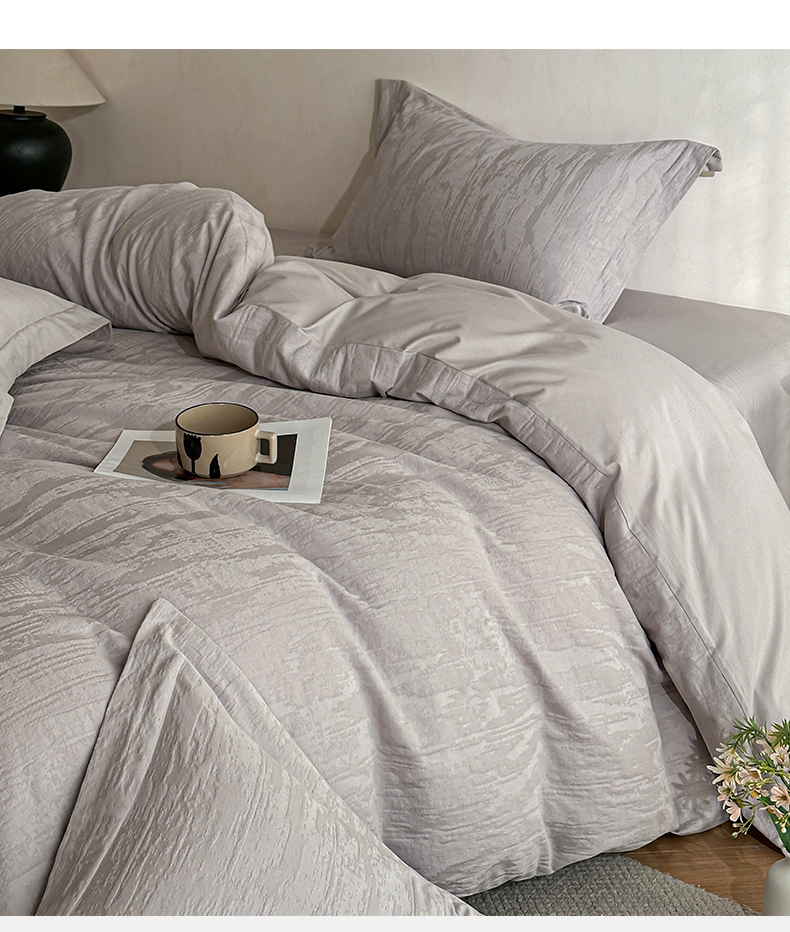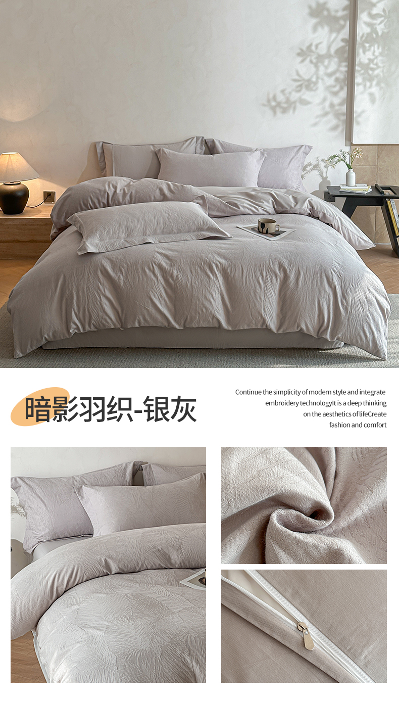 当前位置: 91家纺网 > 商品网购 > 床品套件 > 四件套 > 全棉普通四件套 > 笙意家纺 2025新款全棉纯棉60水洗亮面浮雕立体提花四件套 里约-银灰