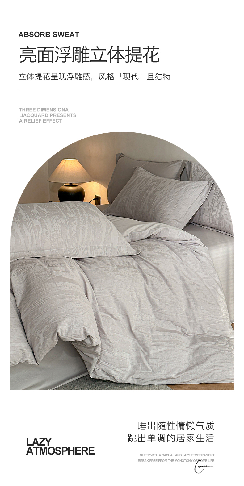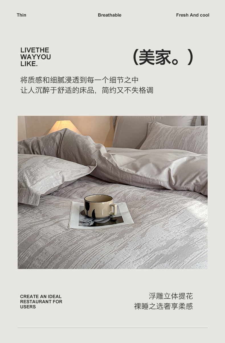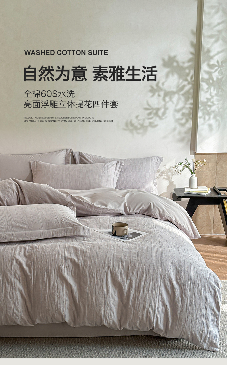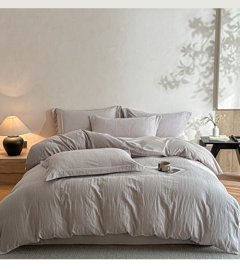 当前位置: 91家纺网 > 商品网购 > 床品套件 > 四件套 > 全棉普通四件套 > 笙意家纺 2025新款全棉纯棉60水洗亮面浮雕立体提花四件套 里约-银灰