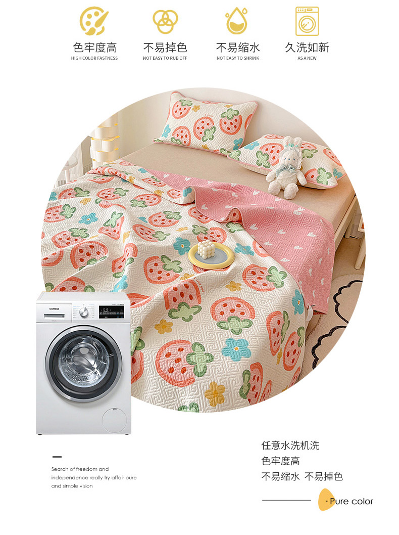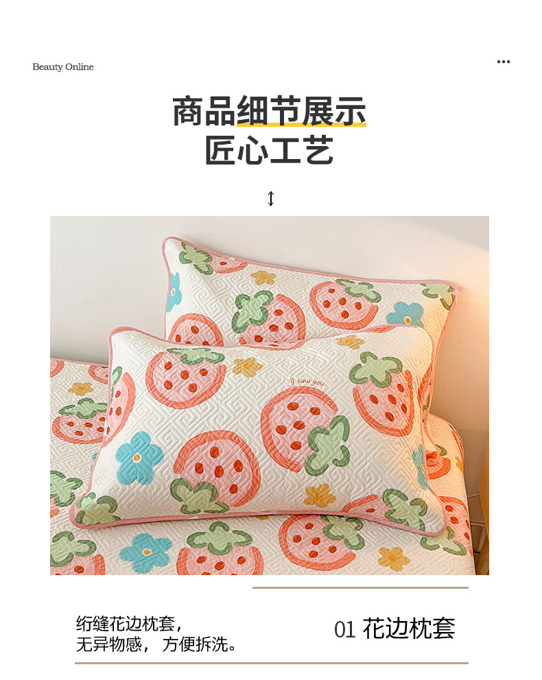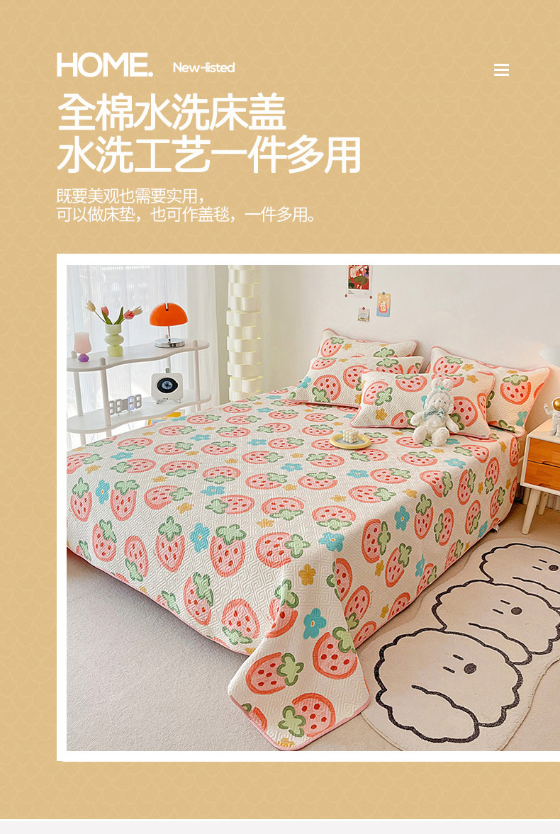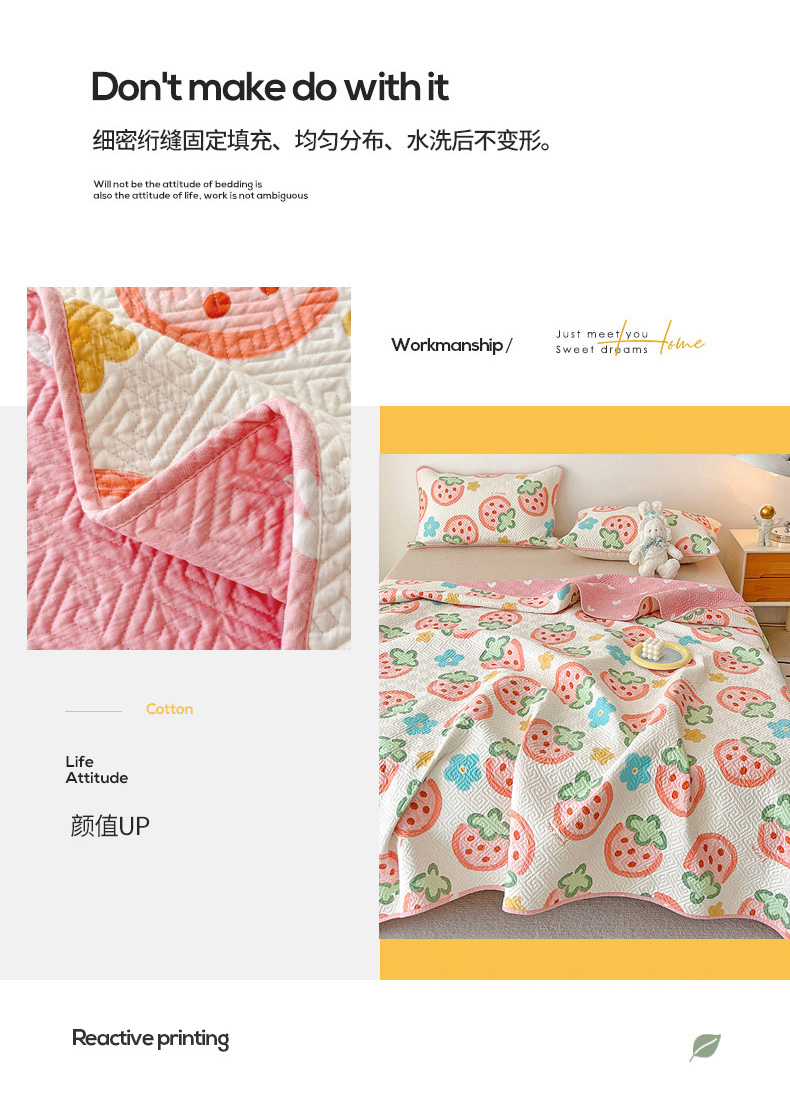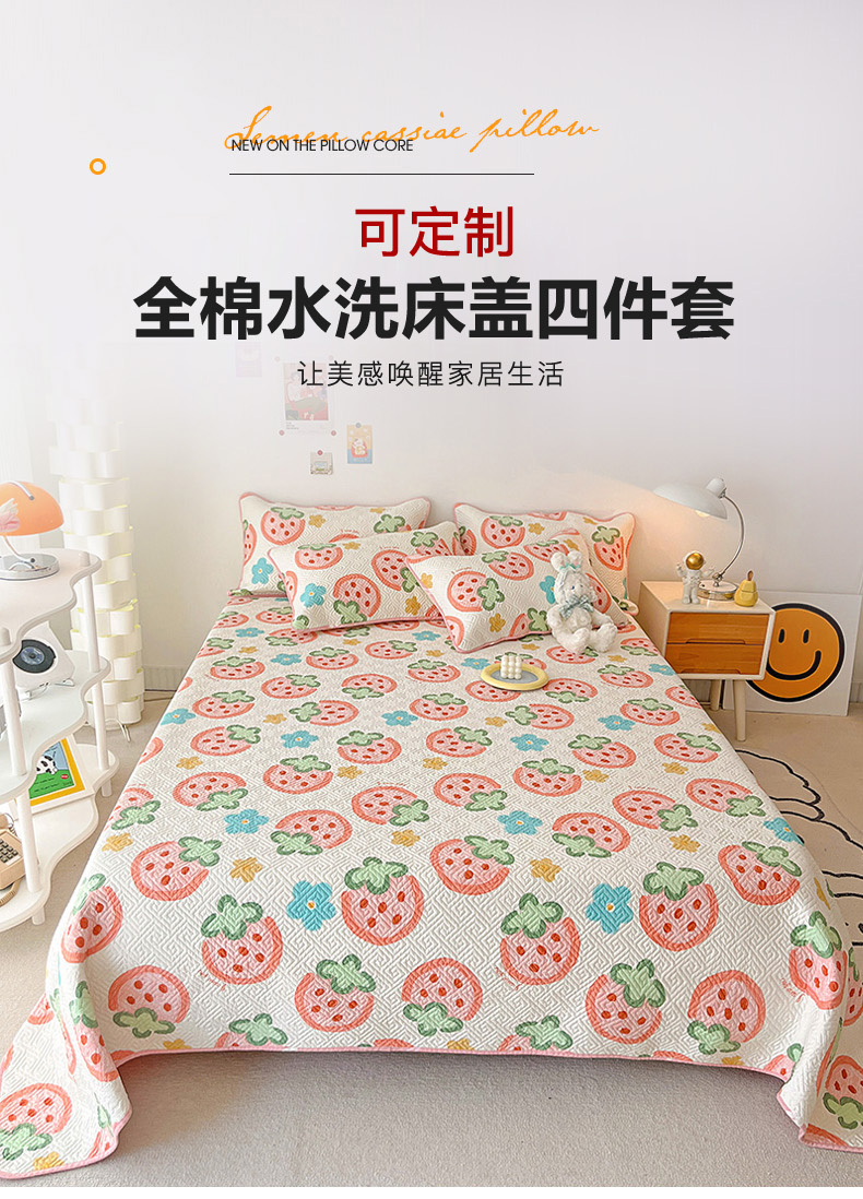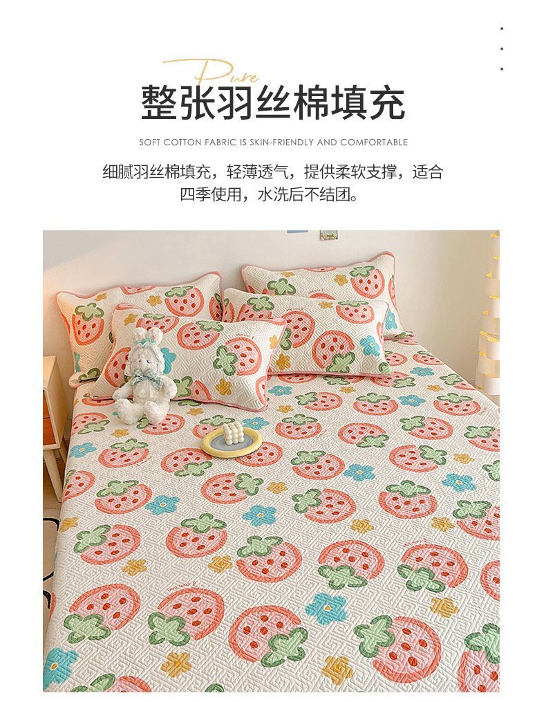 羽爱家纺 新款A类双面全棉印花床盖套件 草莓奶昔,草莓奶昔