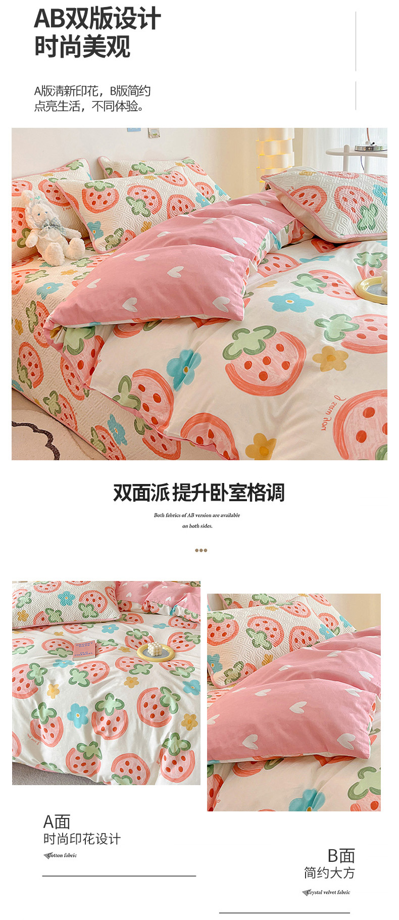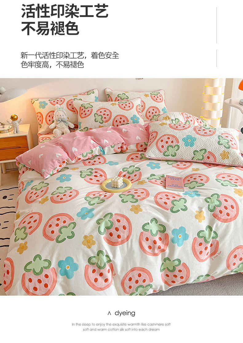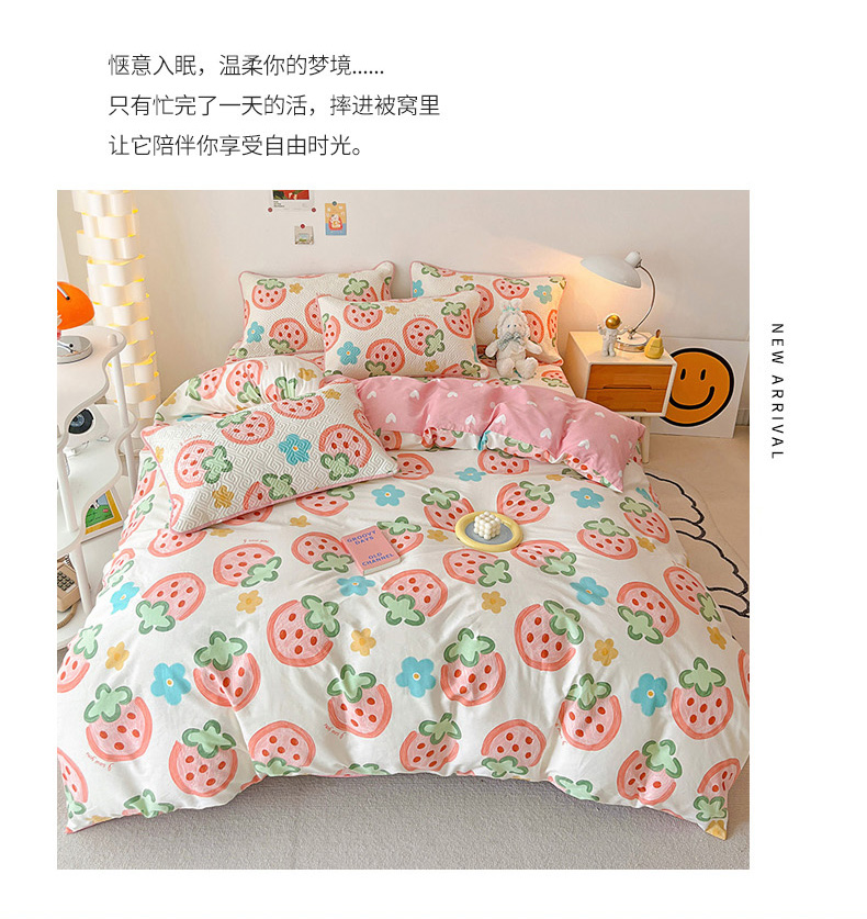 羽爱家纺 新款A类全棉印花水洗床盖四件套系列 草莓物语