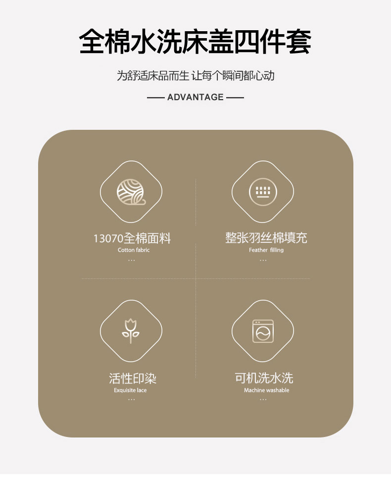 羽爱家纺 新款A类双面全棉印花床盖套件 淡若芬芳,淡若芬芳