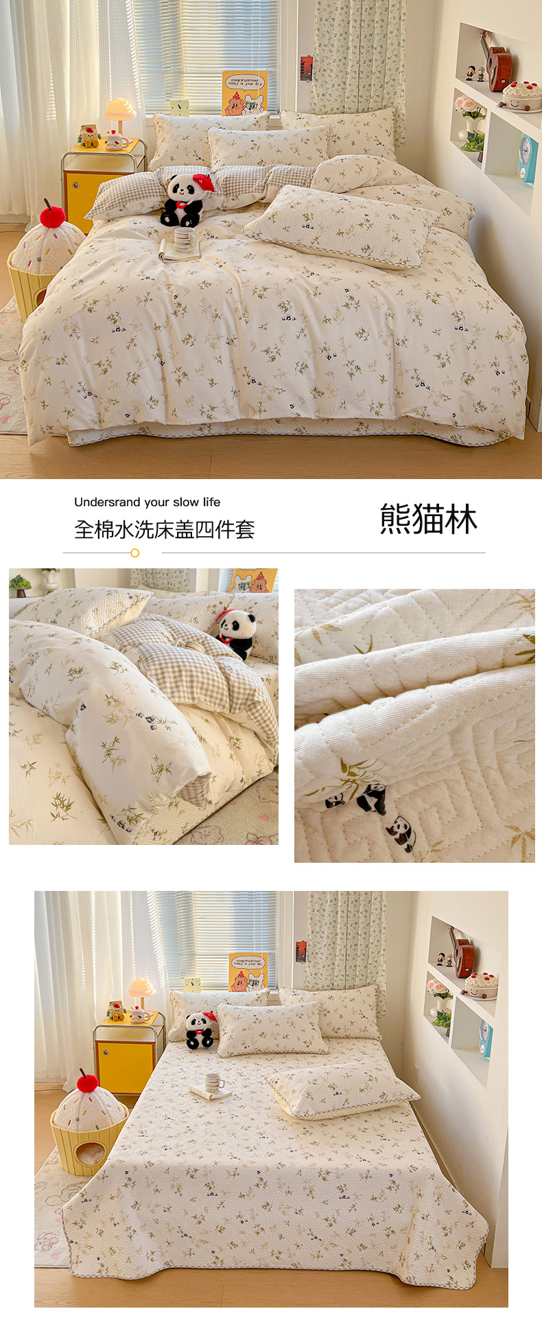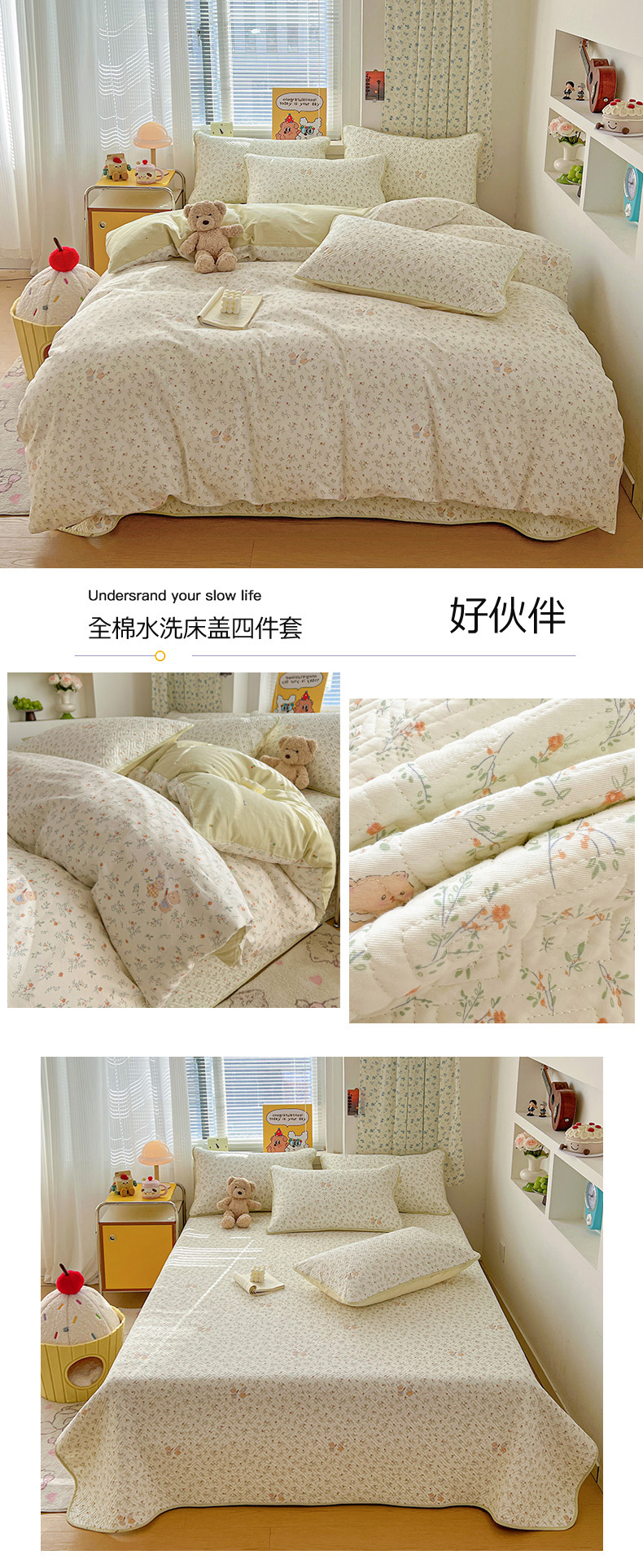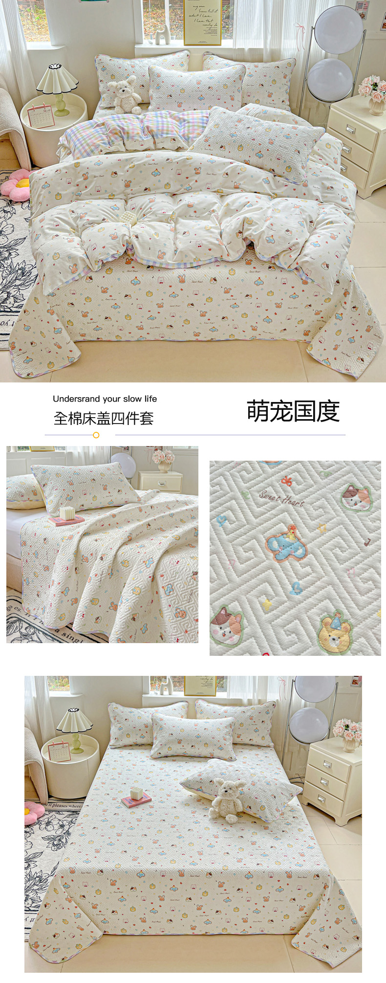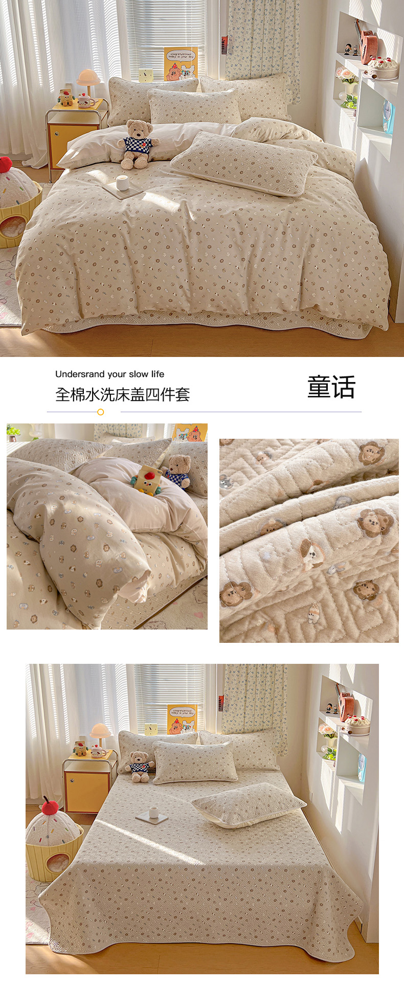 (总)羽爱家纺 2026新款全棉水洗韩版花边床盖四件套,安然花语,步步生莲,丛林花田,海盐繁花,花间春彩,花梦芬芳,花香四溢,花茵淡,甜美手记,甜糯熊熊,雾下山野,小兔叽,心印柔,熊猫福福,月光摇篮,运动狗狗,组合图仅展示