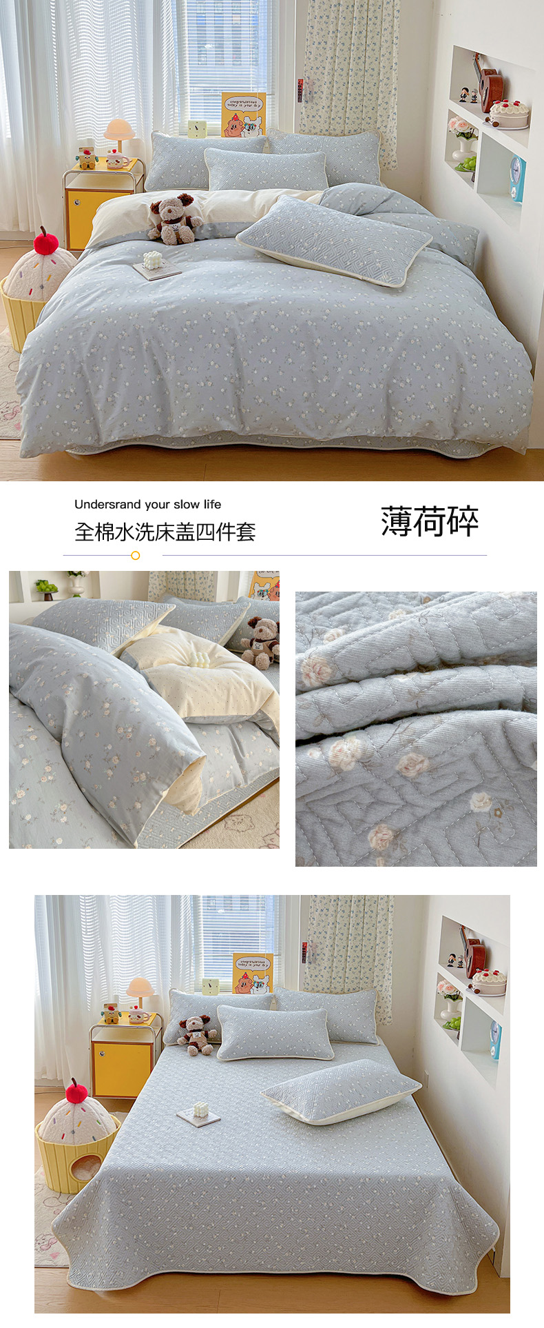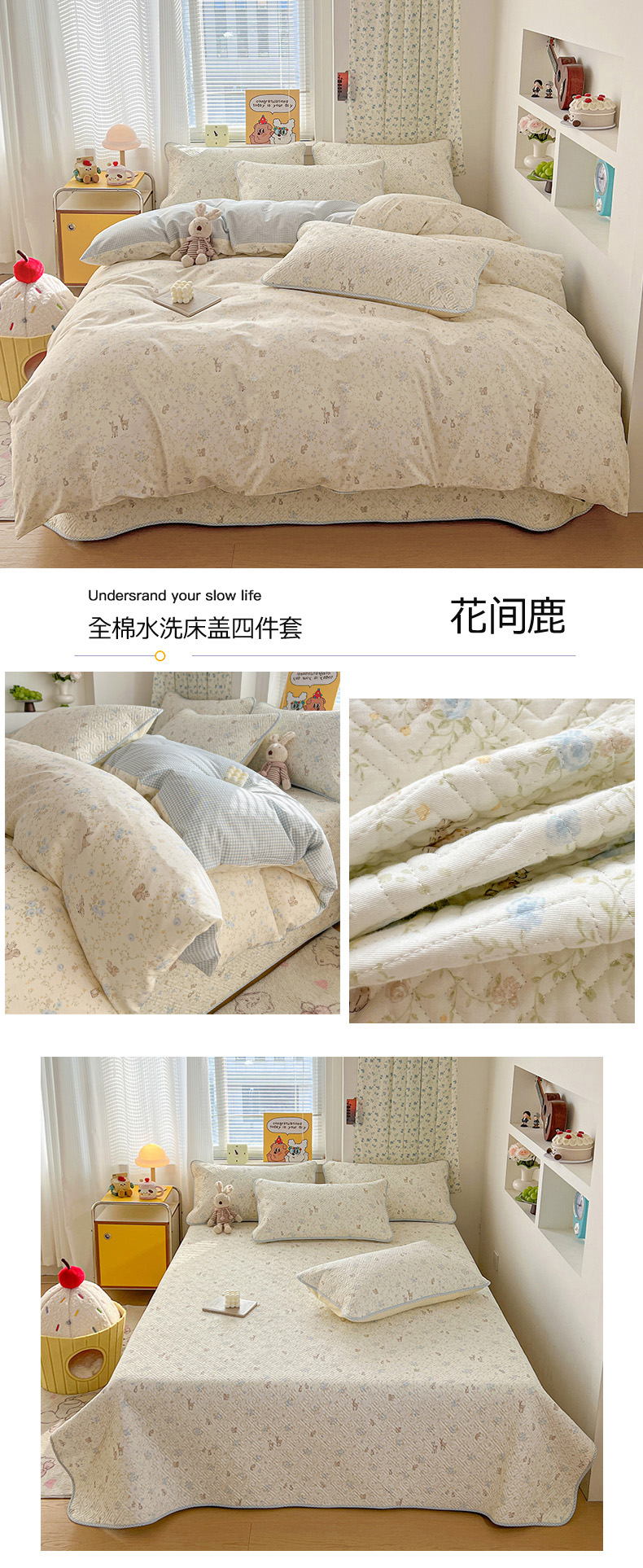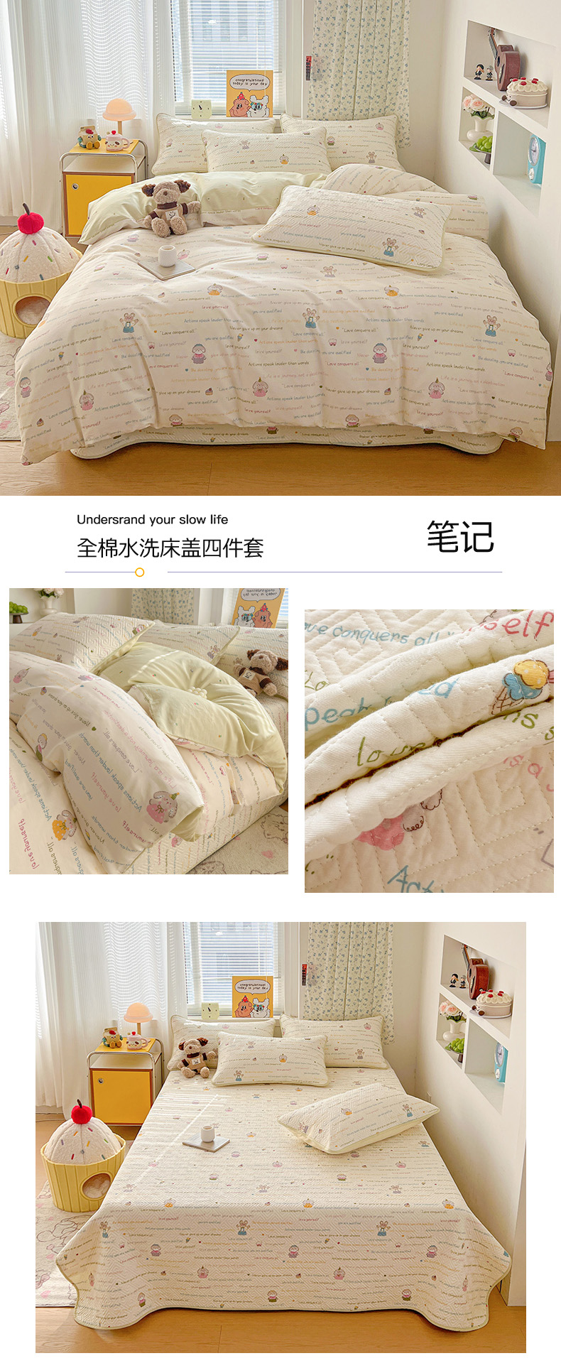 (总)羽爱家纺 2026新款全棉水洗韩版花边床盖四件套,安然花语,步步生莲,丛林花田,海盐繁花,花间春彩,花梦芬芳,花香四溢,花茵淡,甜美手记,甜糯熊熊,雾下山野,小兔叽,心印柔,熊猫福福,月光摇篮,运动狗狗,组合图仅展示