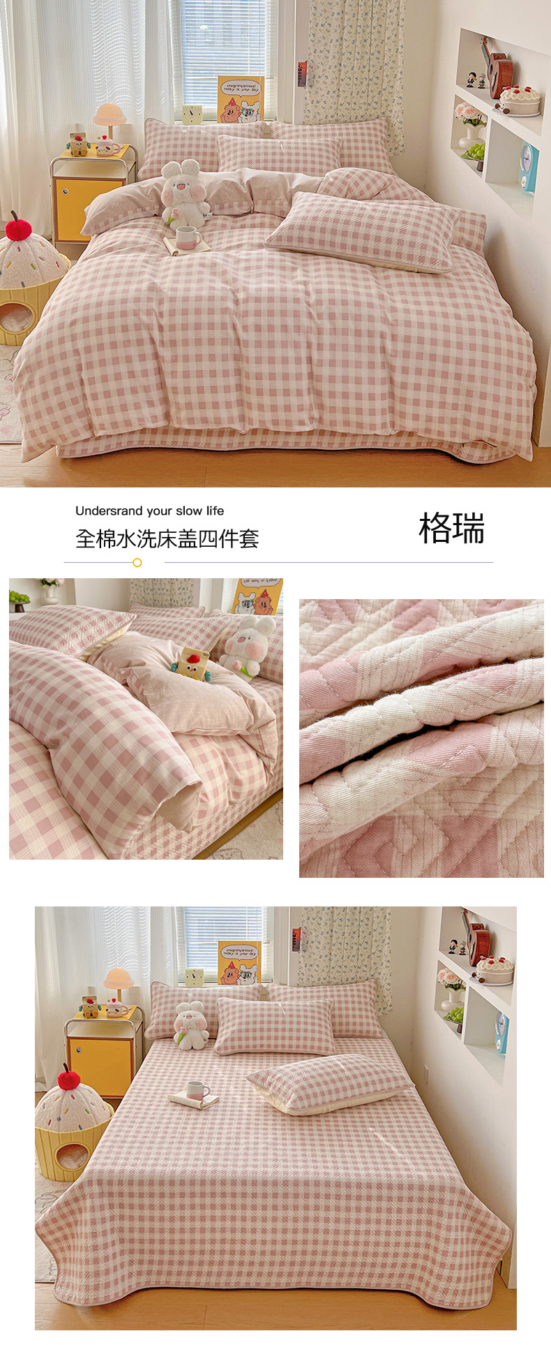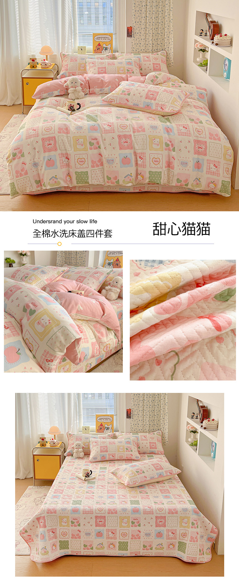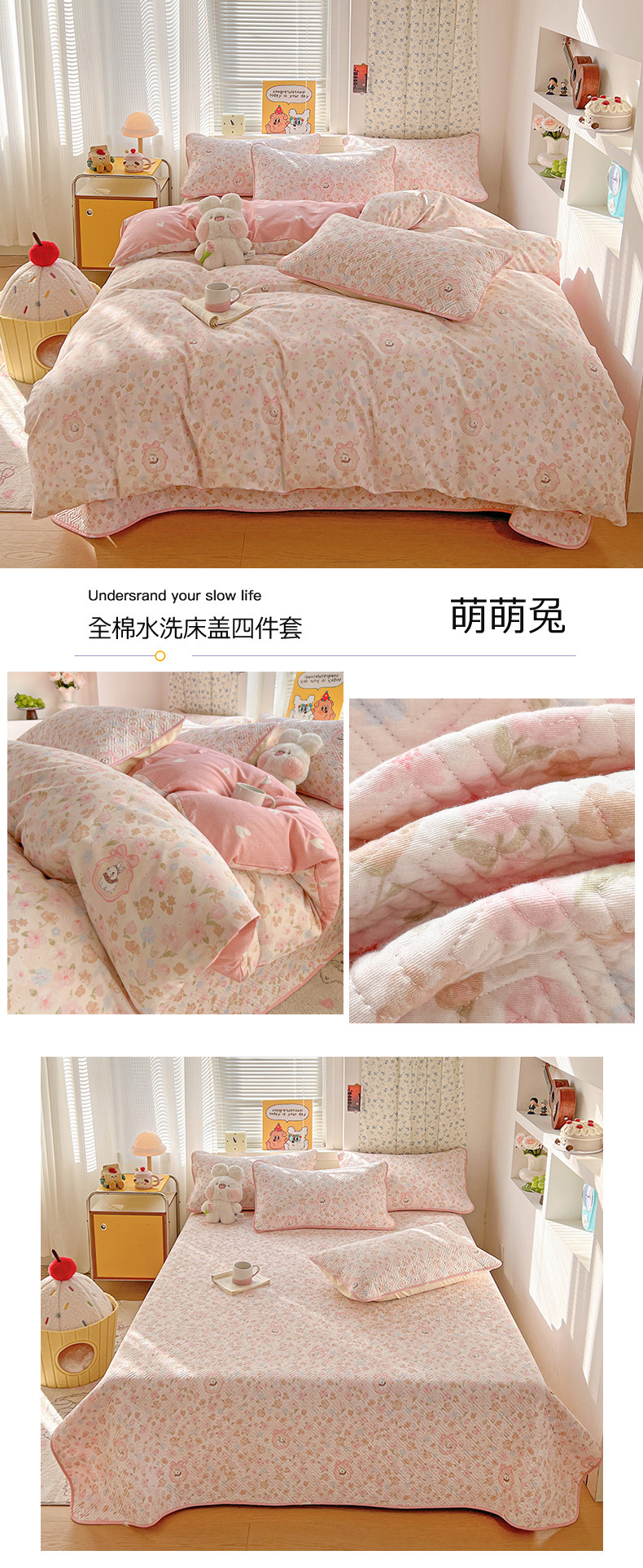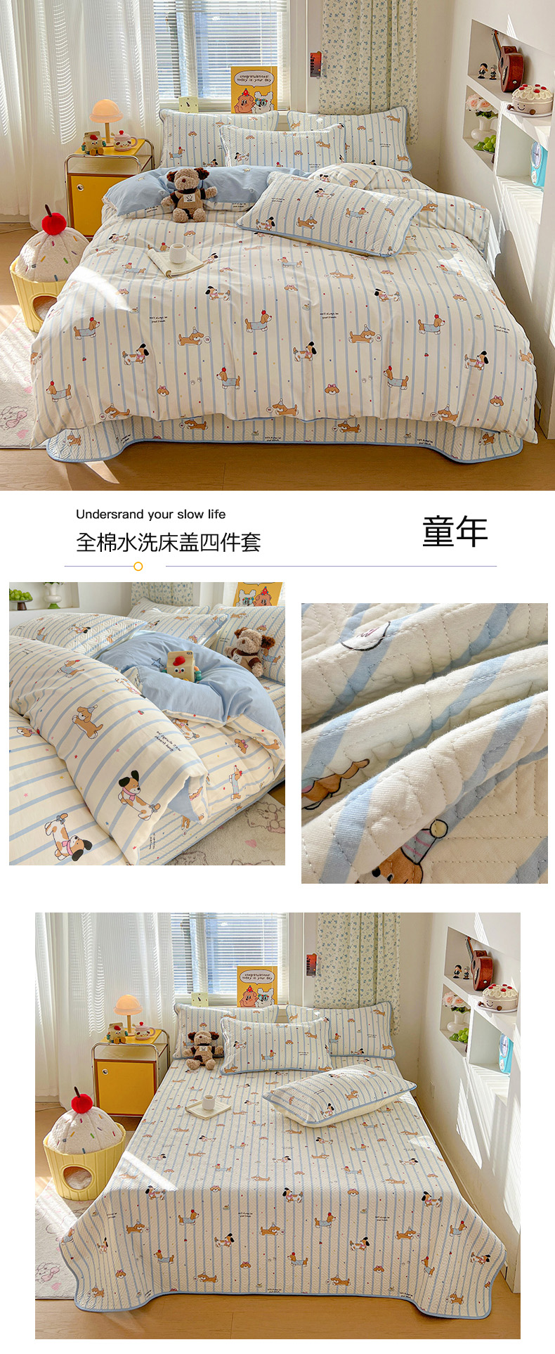 (总)羽爱家纺 2026新款全棉水洗韩版花边床盖四件套,安然花语,步步生莲,丛林花田,海盐繁花,花间春彩,花梦芬芳,花香四溢,花茵淡,甜美手记,甜糯熊熊,雾下山野,小兔叽,心印柔,熊猫福福,月光摇篮,运动狗狗,组合图仅展示