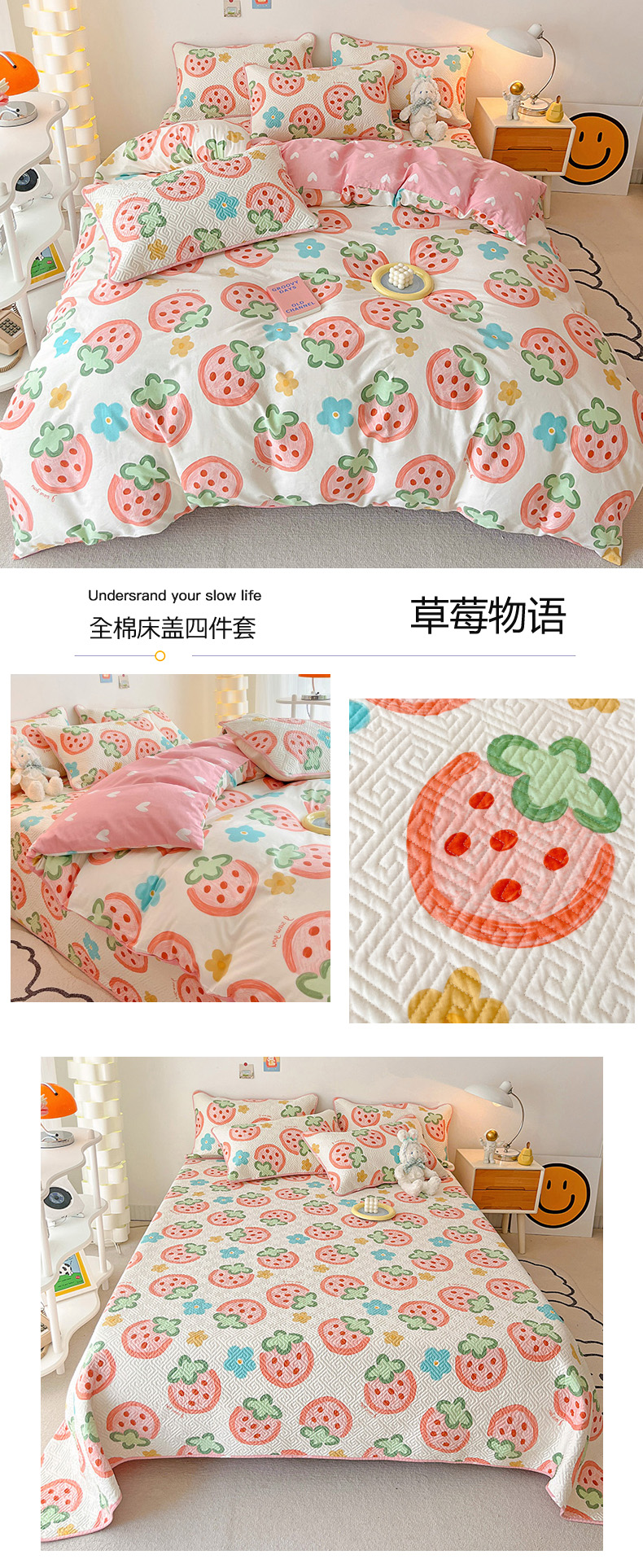 商品名称:羽爱家纺 新款A类全棉印花水洗床盖四件套系列 草莓物语