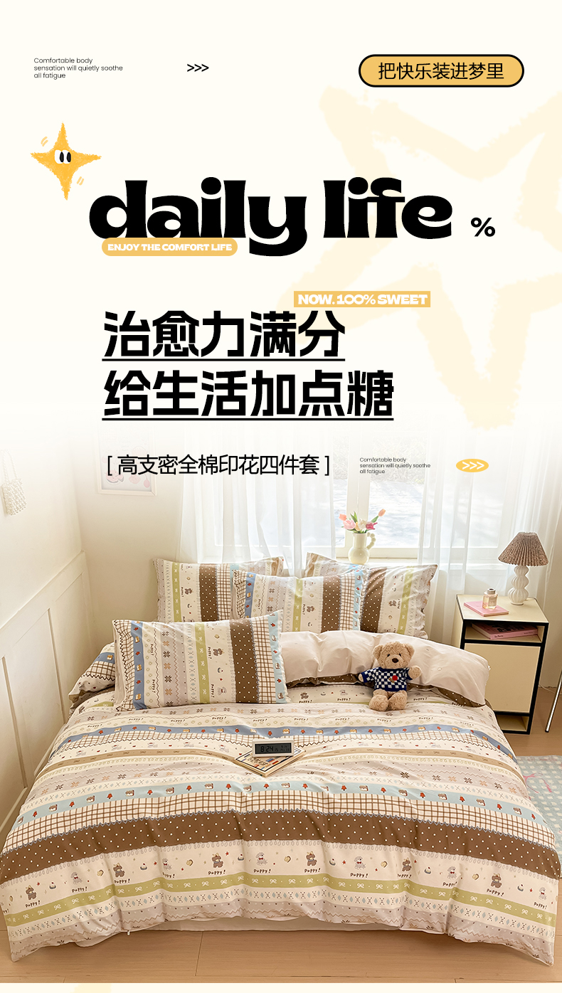 (总)吉象家纺 2026新款高支密全棉印花四件套,睡梦熊,布偶假期,彩虹木马,春游手记,点点小熊,度假恐龙,快乐小马,妙趣乐园,奶酪小可爱,秋日乐园,三小只,甜梦小精灵,童话花町,童年小事,温柔花朵熊,小小宇航员,星际仔仔,星星漫游记