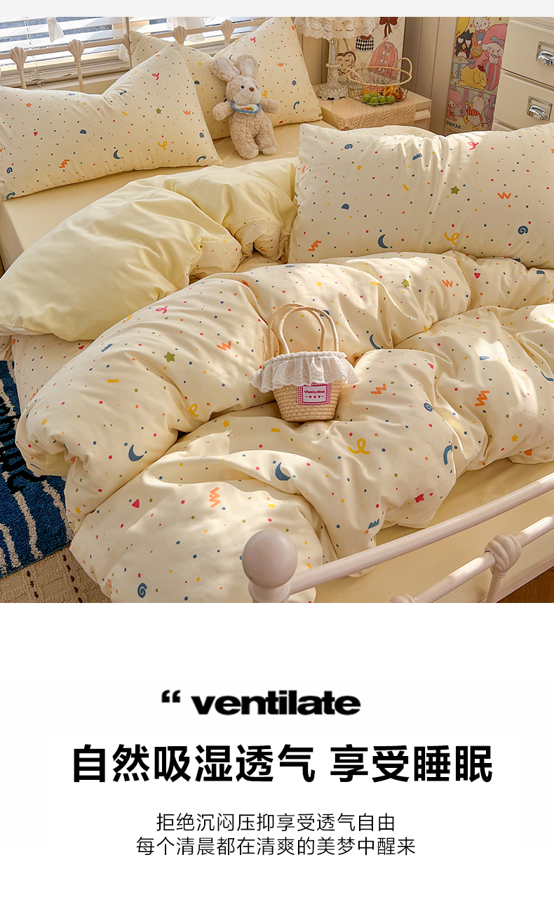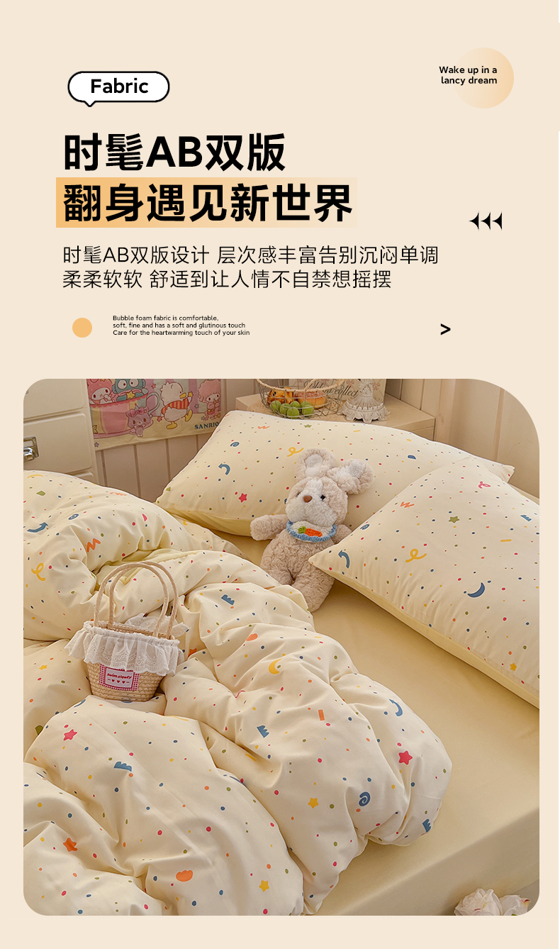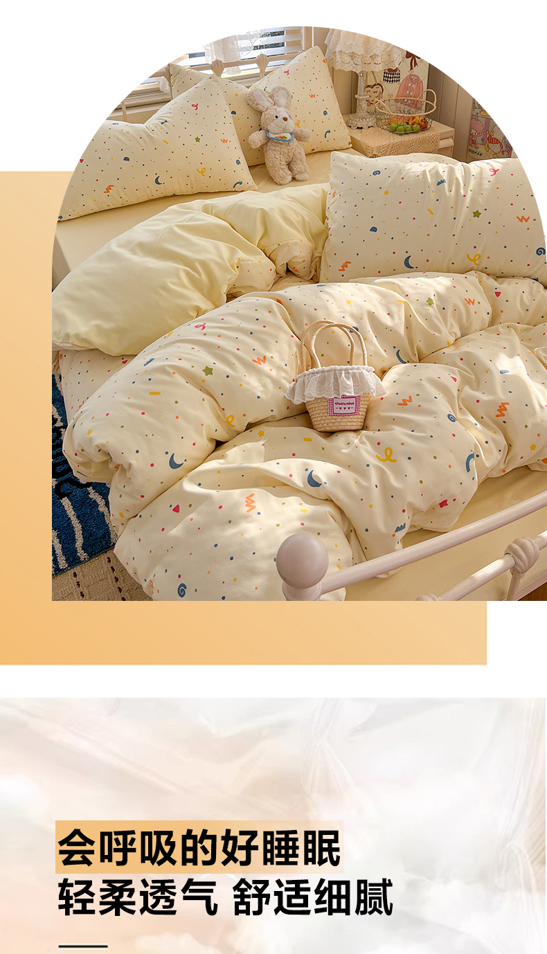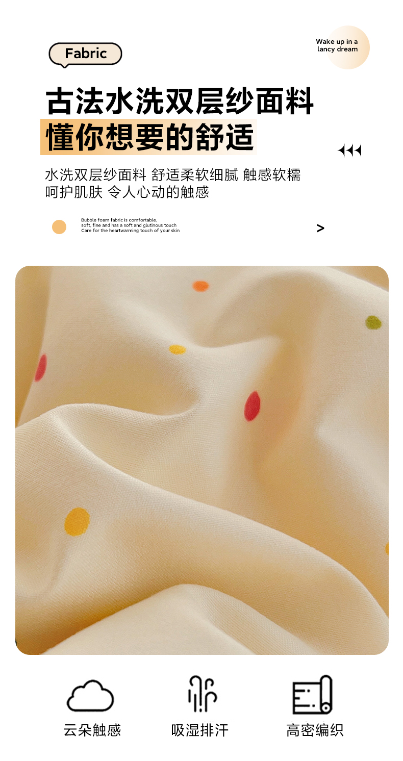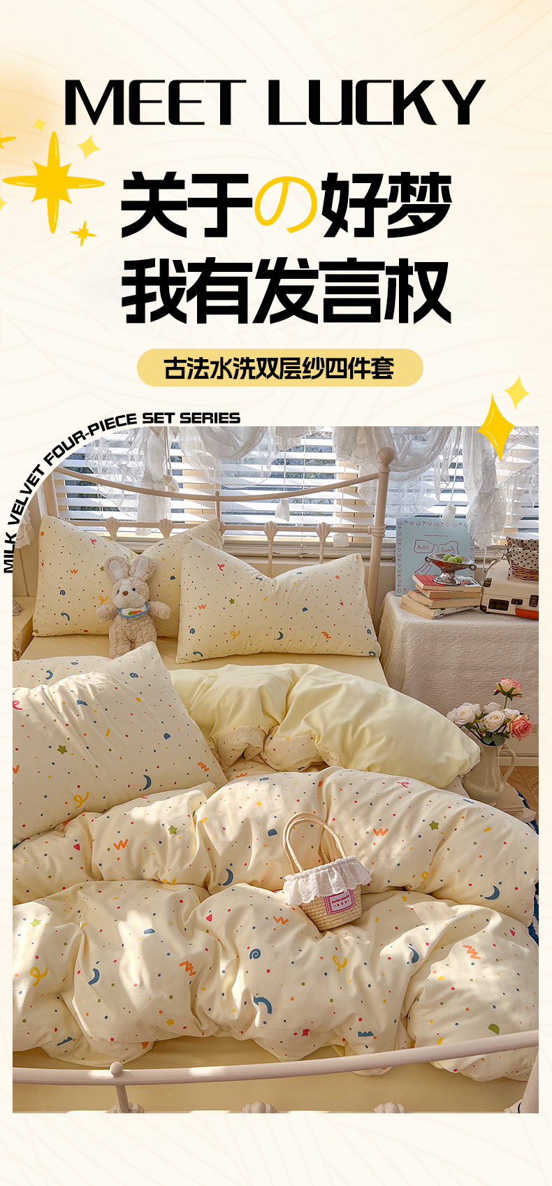 当前位置: 91家纺网 > 商品网购 > 床品套件 > 四件套 > 水洗棉四件套 > 玉海棠家纺 2026新款古法水洗仿棉云感纱四件套 满天星
