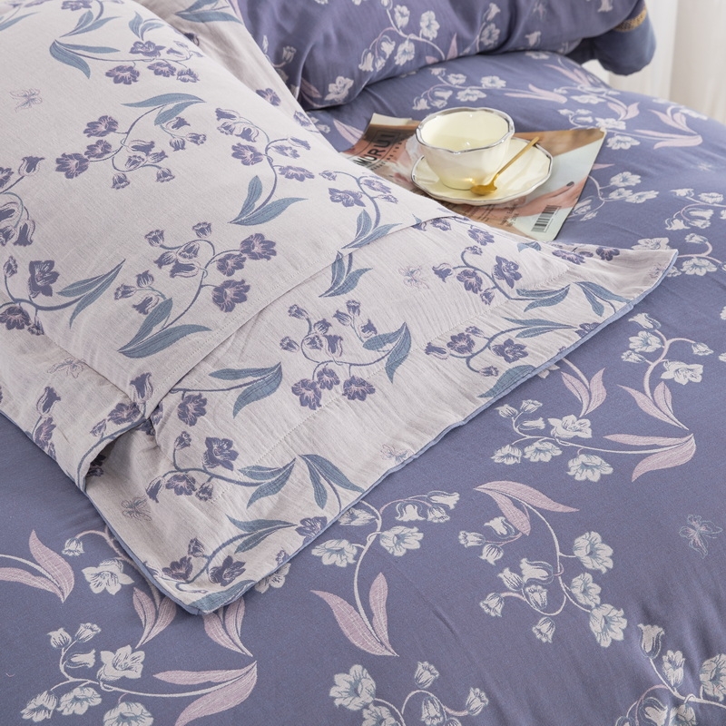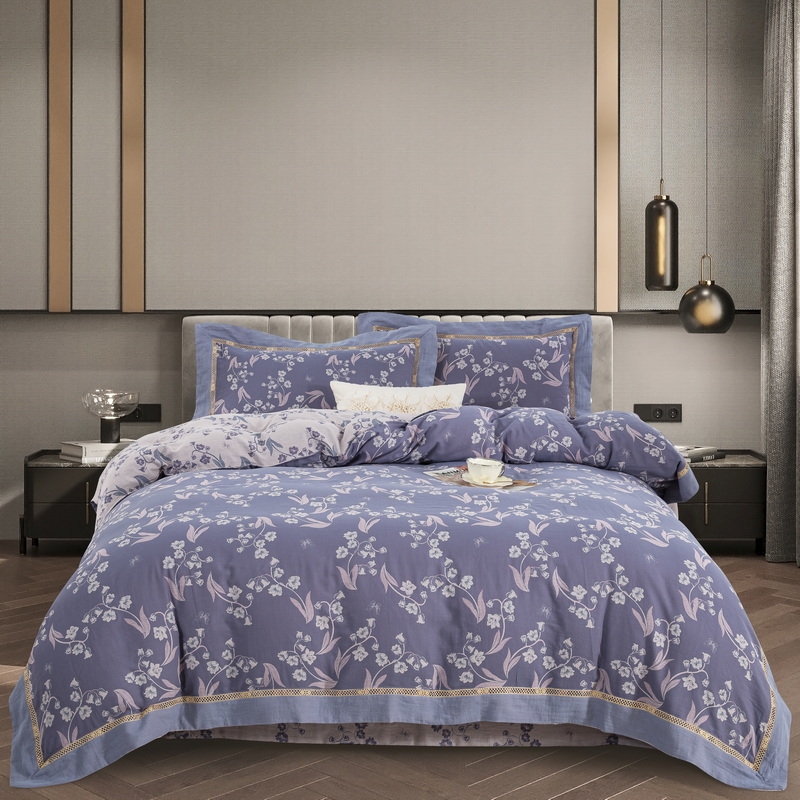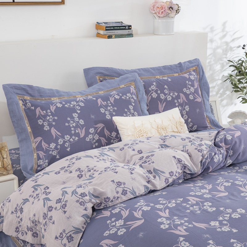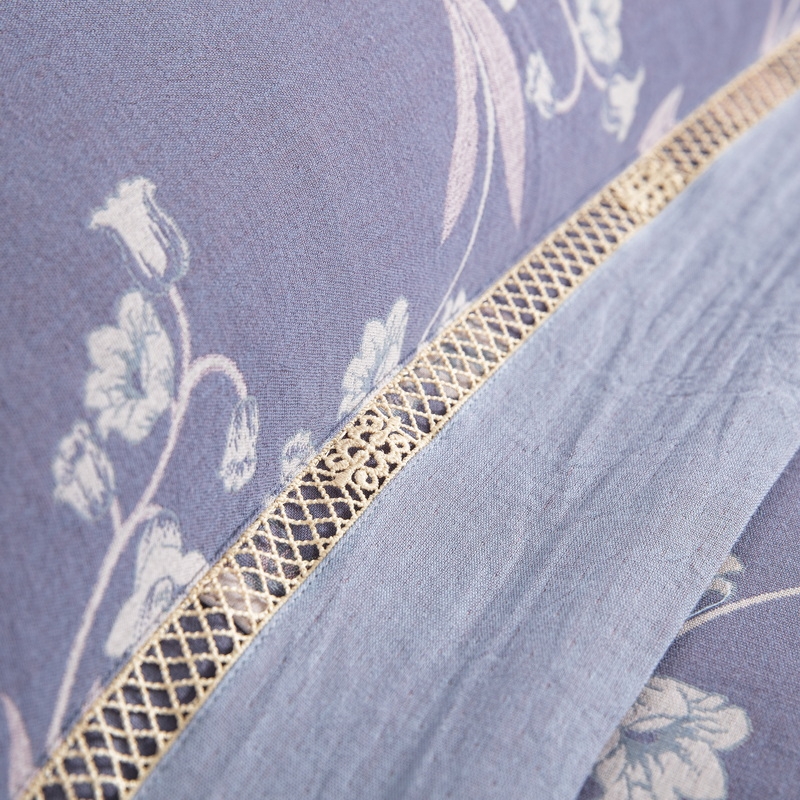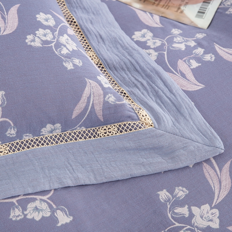 商品名称:(总)仰望棉麻双层纱供应链 2026新款莫兰迪轻奢系列镂空飞边款全棉色织提花四件套-铃兰