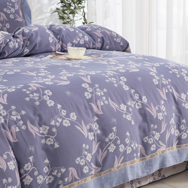 (总)仰望棉麻双层纱供应链 2026新款镂空飞边款全棉色织提花四件套-薰衣草,薰衣草,薰衣草-紫