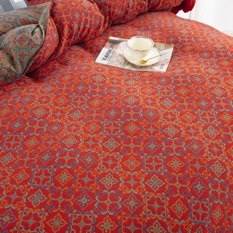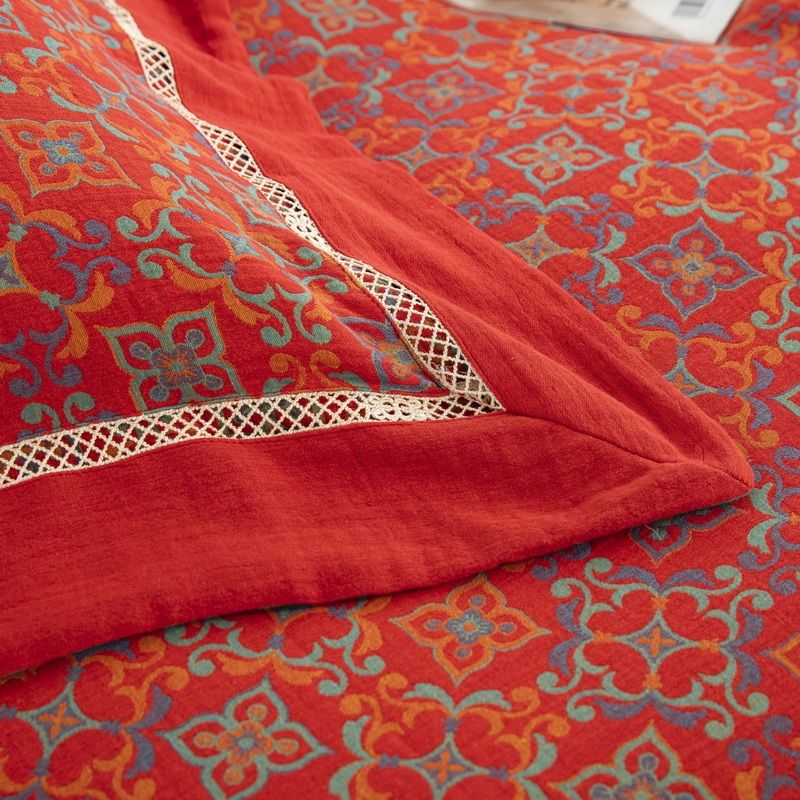 商品名称:(总)仰望棉麻双层纱供应链 2026新款镂空飞边款全棉色织提花四件套-鸳鸯锦