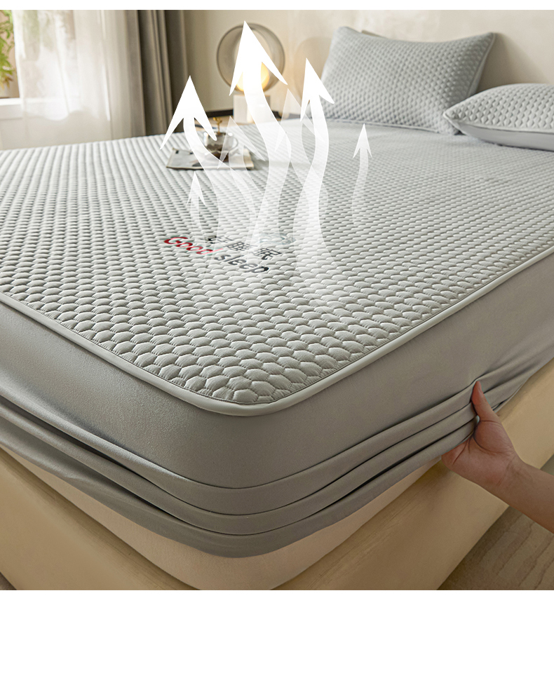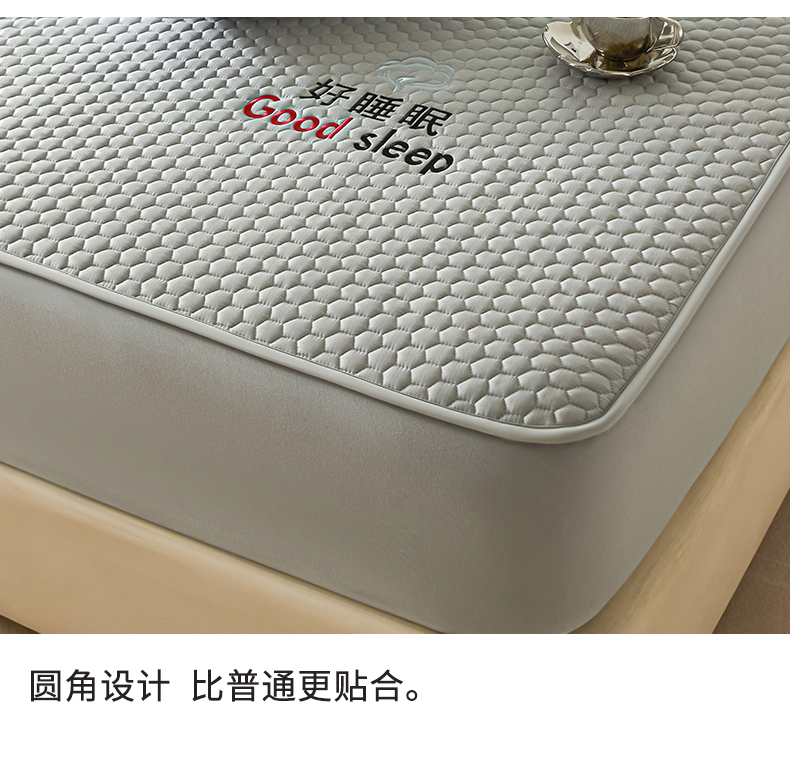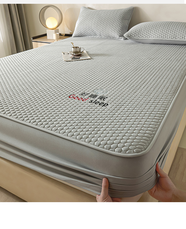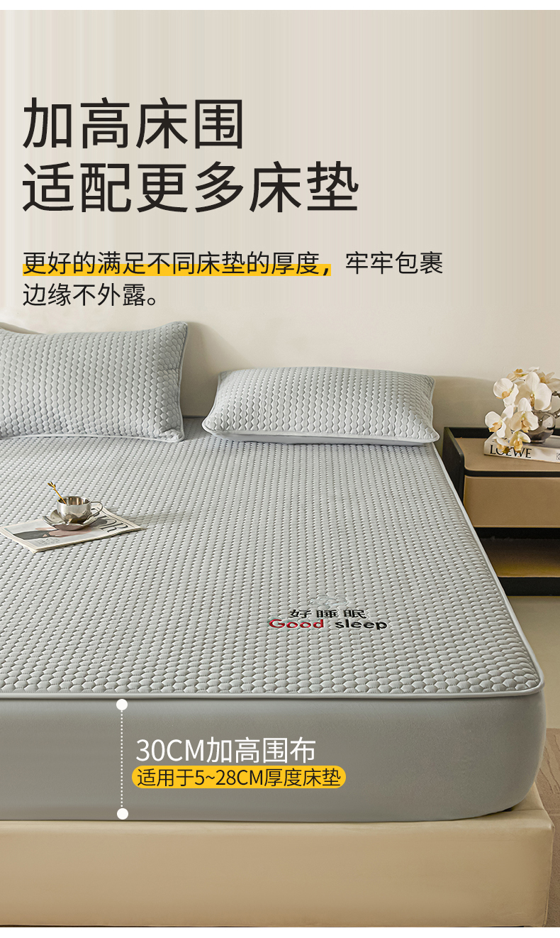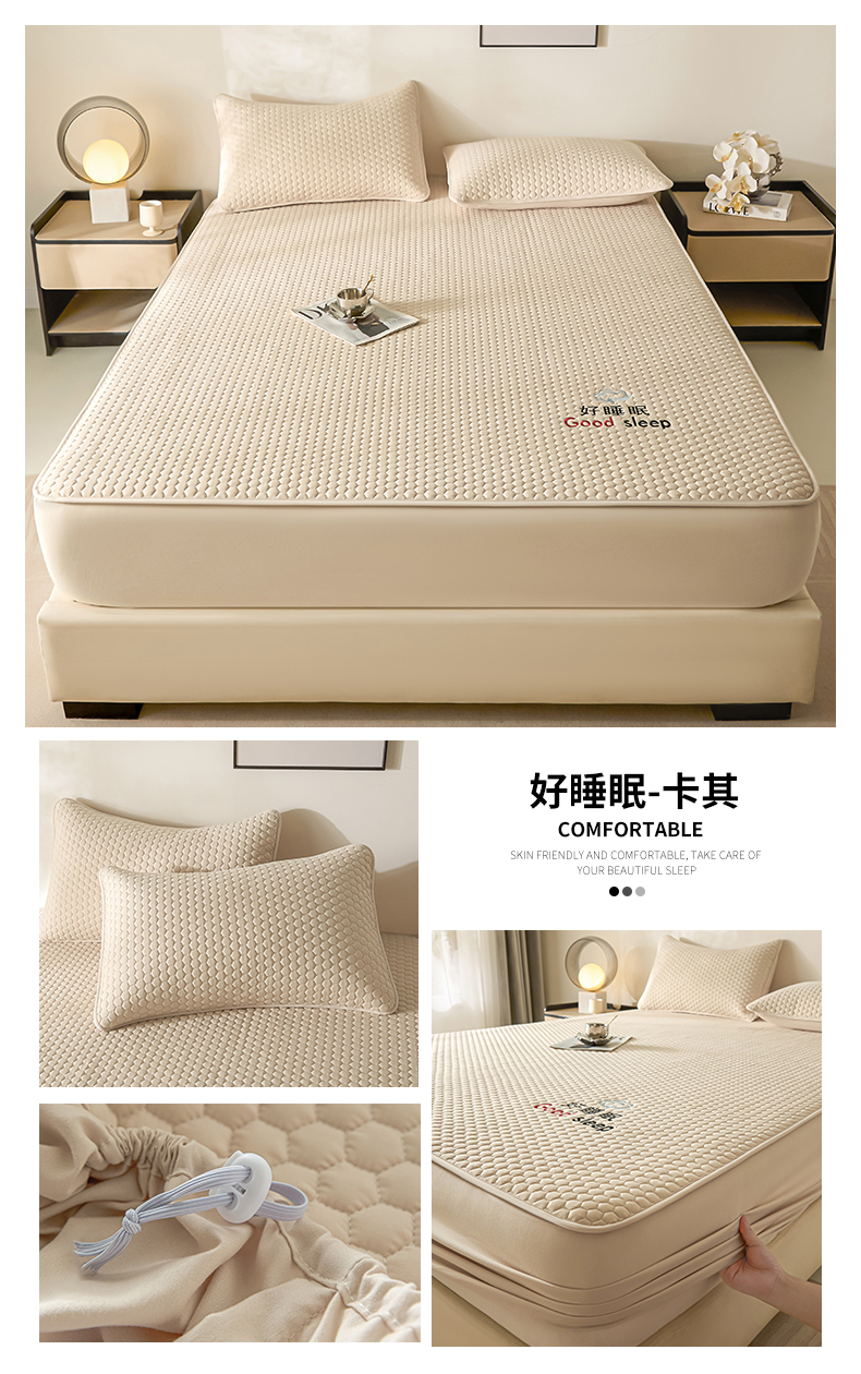 (总)居眠 2025新款防水夹棉床笠-清雅,清雅-粉色,清雅-灰色,清雅-卡其,清雅-绿色,清雅-米白,清雅-深蓝