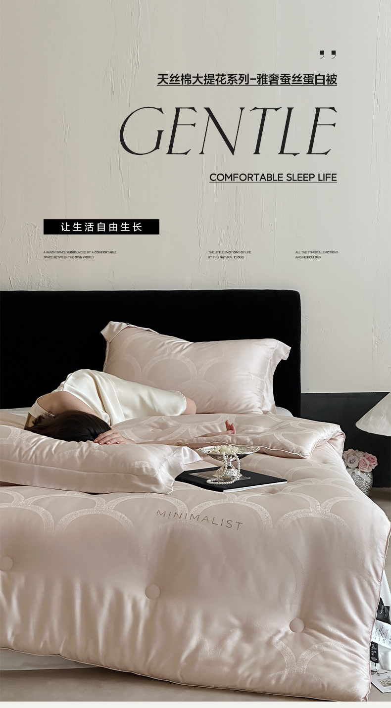 佳汐蓝家纺 2026新款天丝棉大提花系列雅奢蚕丝蛋白被 被子被芯 香槟金