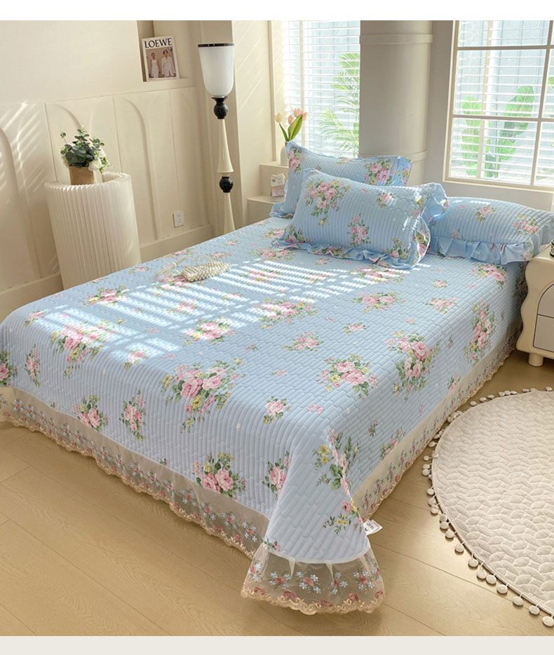• 91家纺网 家纺一手货源 找家纺 乐逸家纺 2025新款100%纯棉全棉印花 法式风情蕾丝花边床盖款 全棉夹棉绗缝蕾丝款床盖-柔风铃兰花瓣