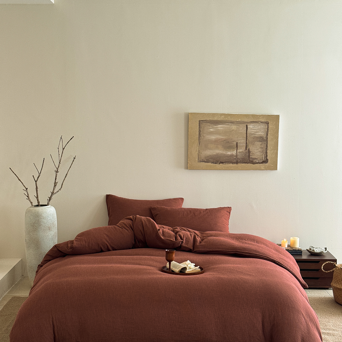 (总)爱丽丝 2025新款云感色织全棉双层纱四件套,粉色,红色,咖色,绿色,米色