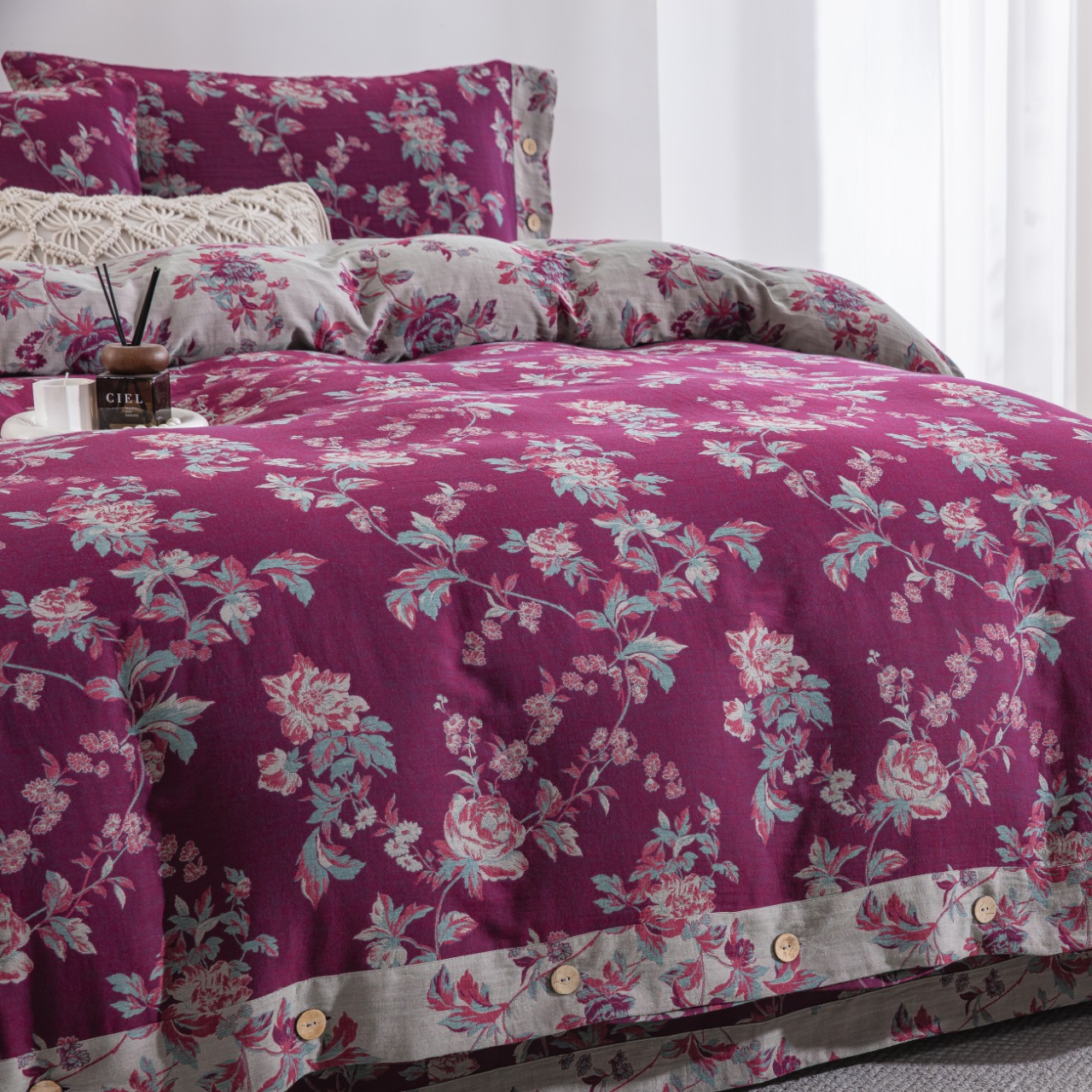 (总)仰望棉麻双层纱供应链 2026新款浓清爱意全棉纯棉色织提花纽扣款四件套