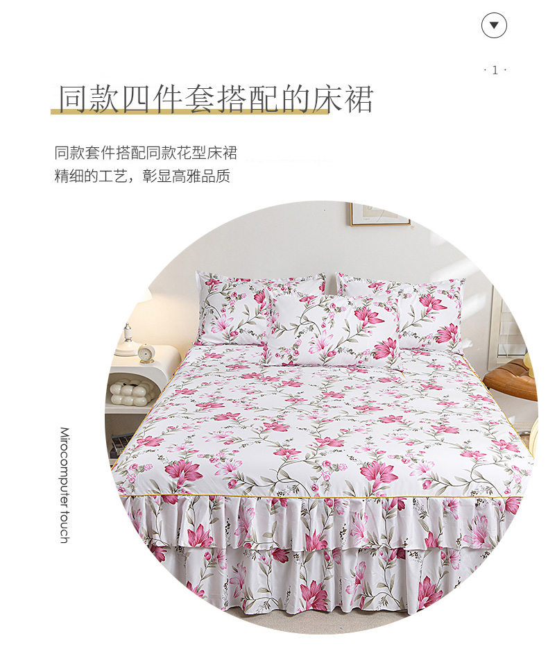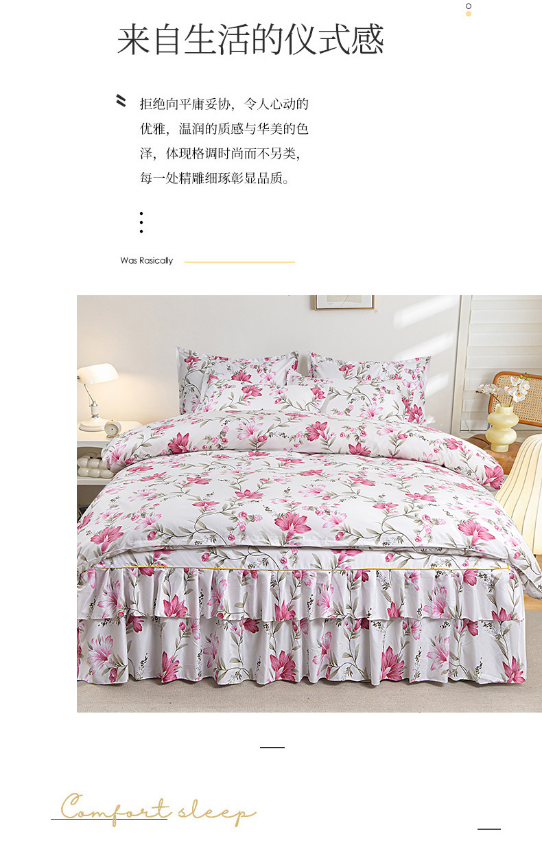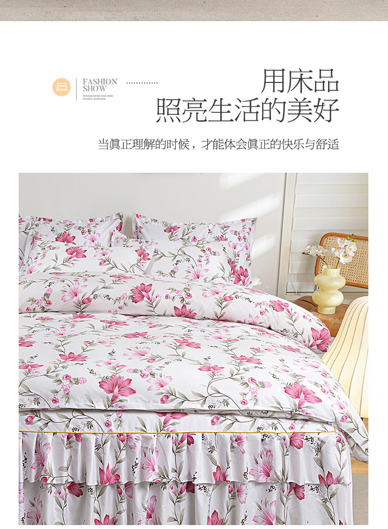 当前位置: 91家纺网 > 商品网购 > 床品套件 > 四件套 > 其它四件套 > 小雨家纺 2026新款跨境芦荟棉韩版花边床裙单品套件--四件套 笔下生花粉