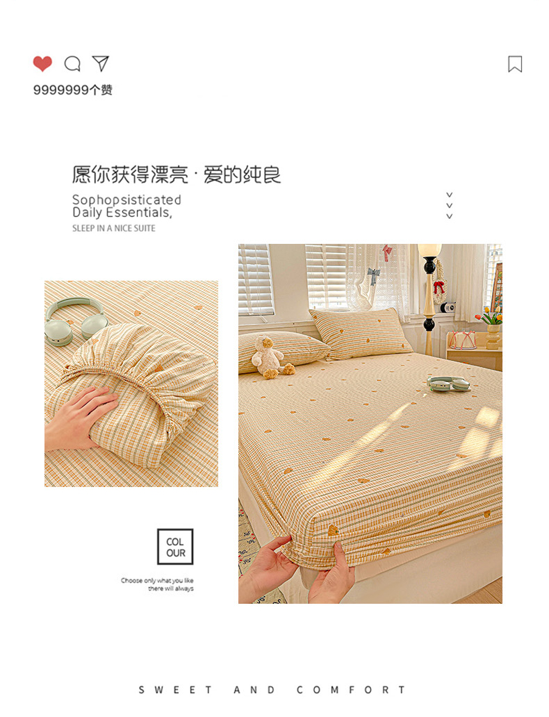 • 91家纺网 家纺一手货源 找家纺 (总)温眠家纺 2026新款古法水洗棉加厚高克重双层纱单床笠床笠单件单品床笠,条纹南瓜,彩波波,蛋糕小猫,扶桑花未落,花韵,绮梦花间,素影,挽星入梦,汪星人,星星人,樱之桃桃,云间花述,织梦,紫菀