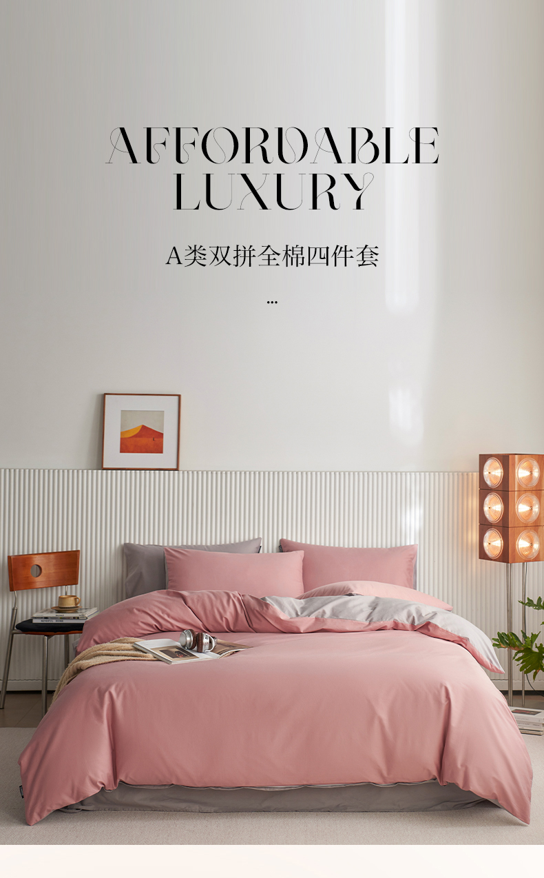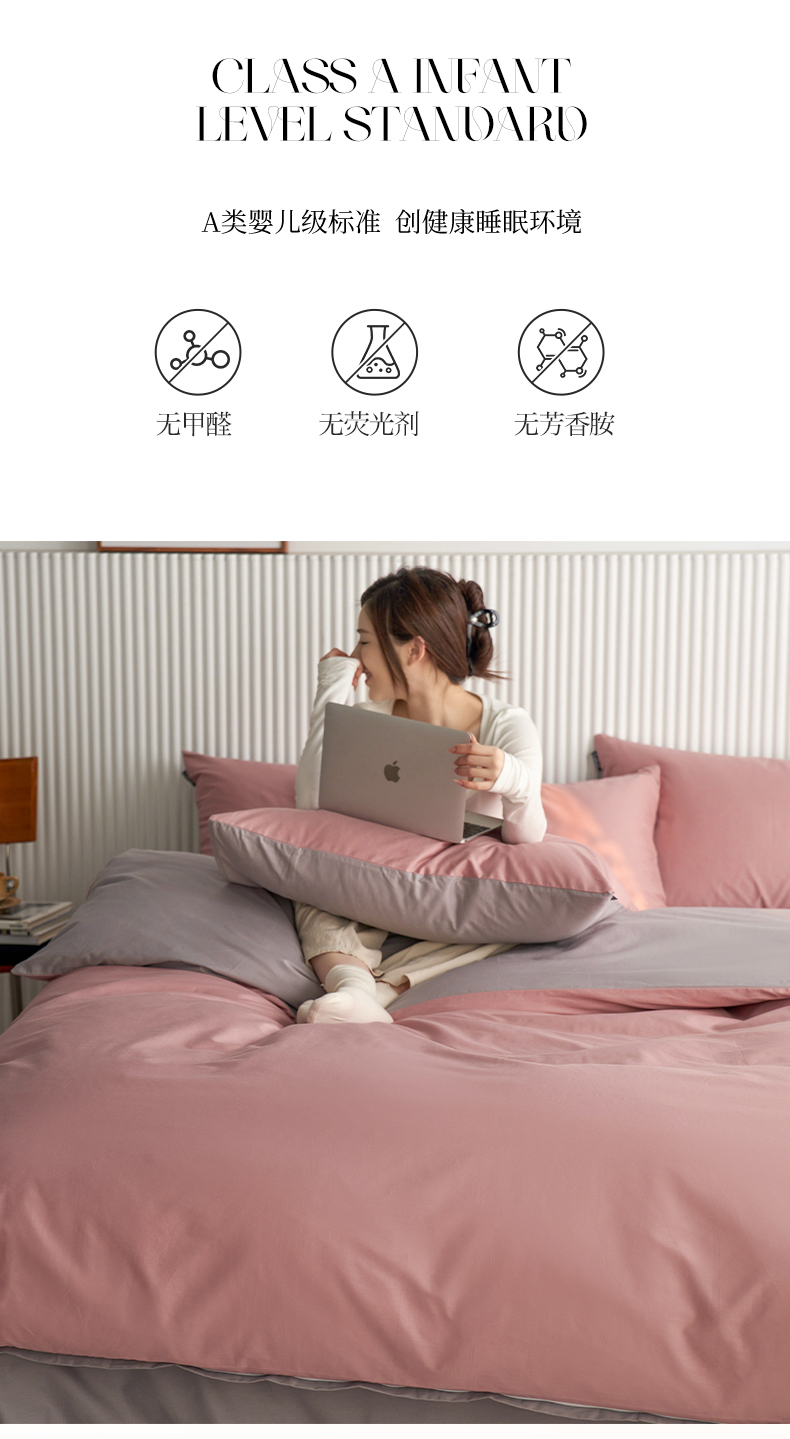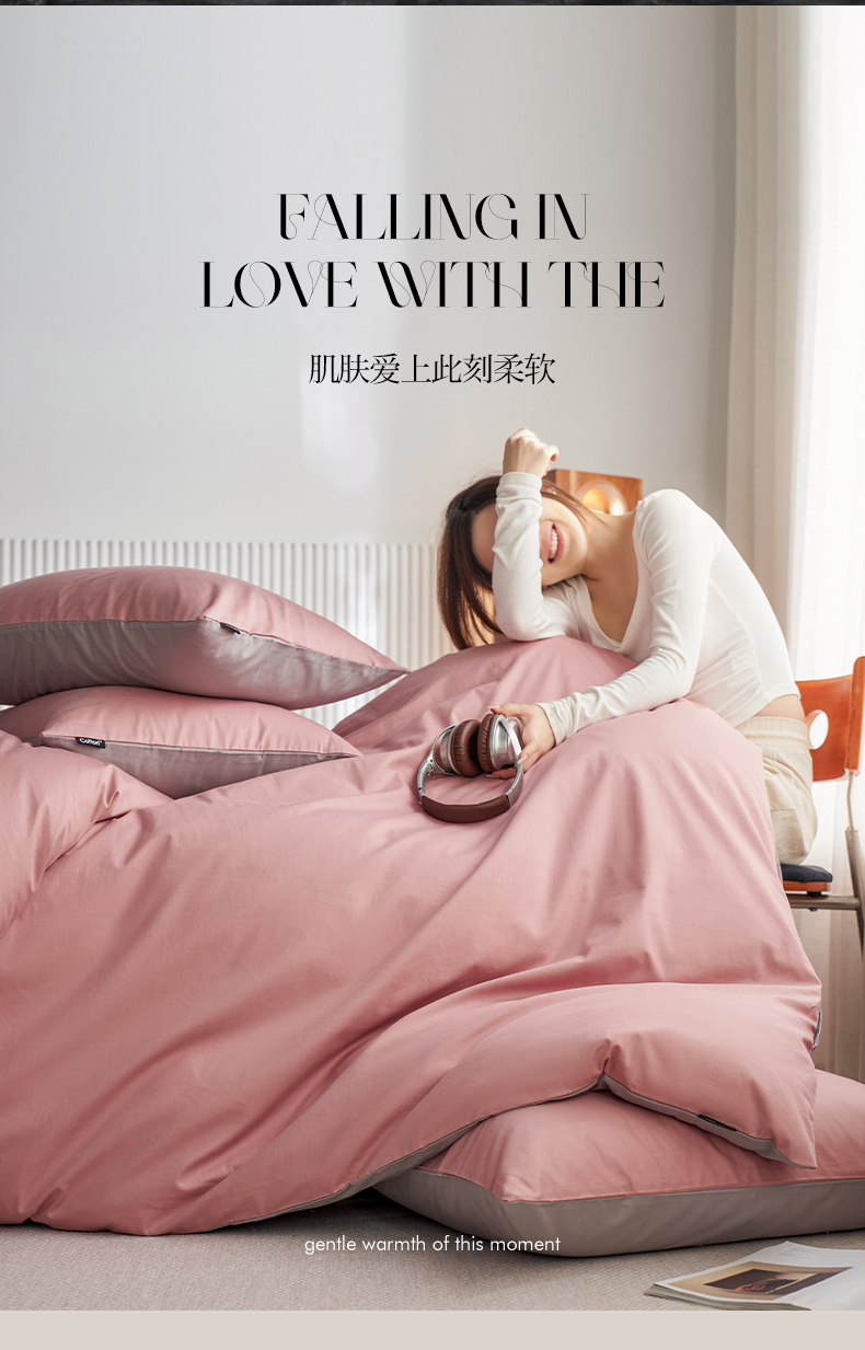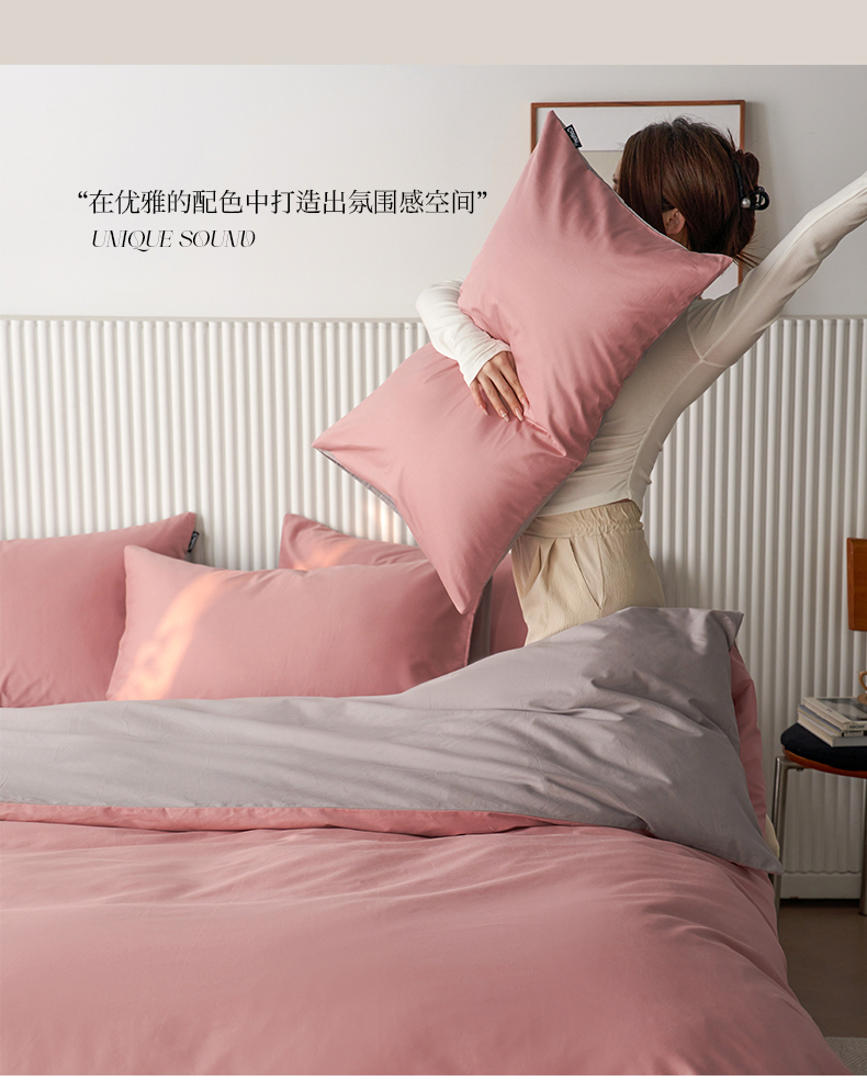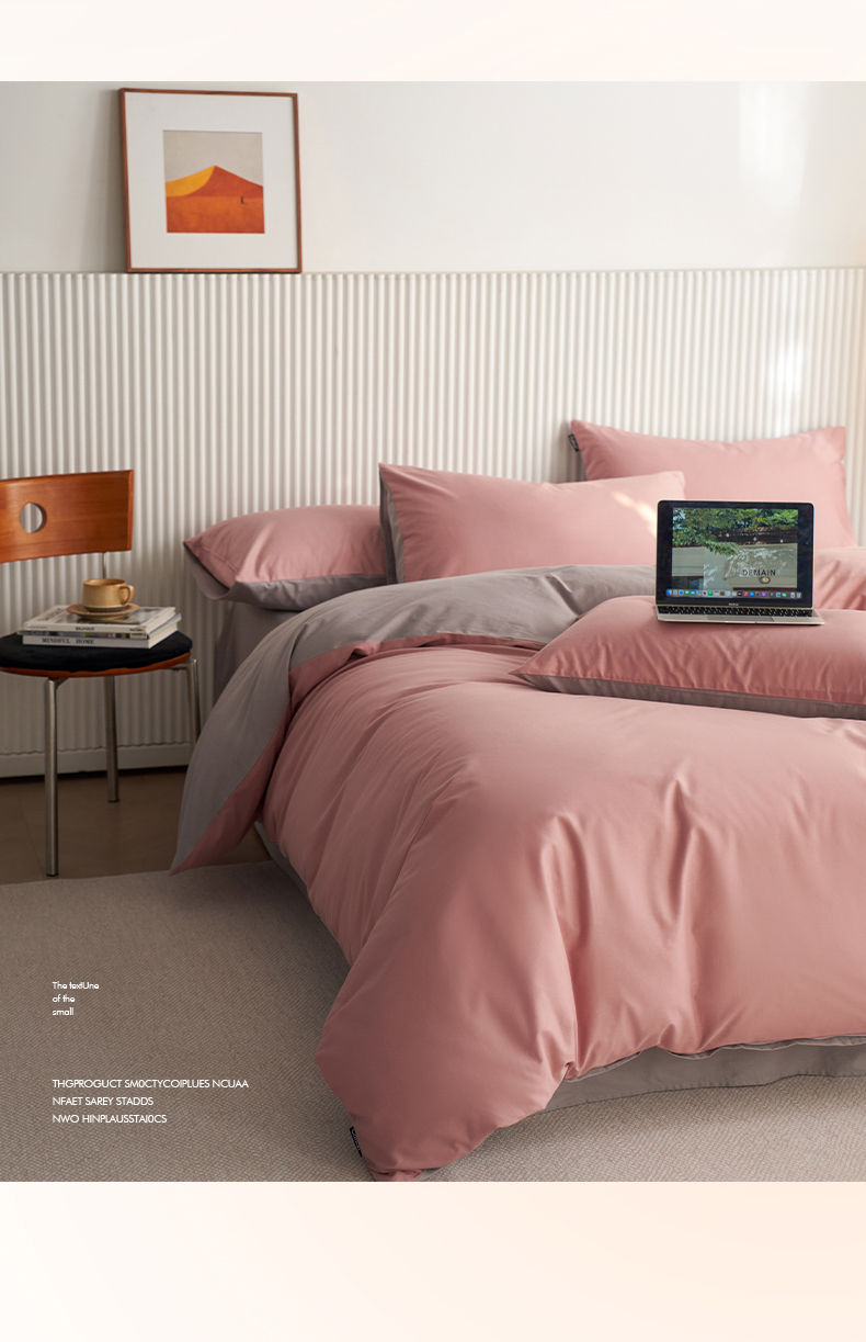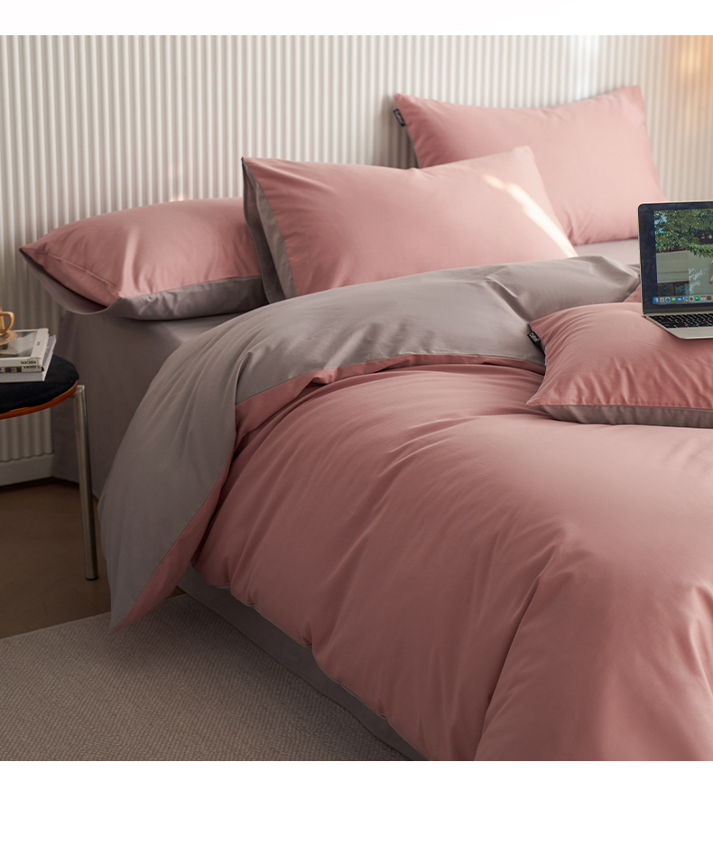 当前位置: 91家纺网 > 商品网购 > 床品套件 > 四件套 > 全棉普通四件套 > 小懒猪 2026新款13372A类双拼纯色全棉纯棉四件套 (提供买家秀) 豆沙-银灰
