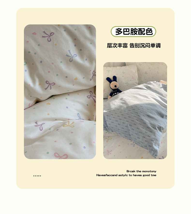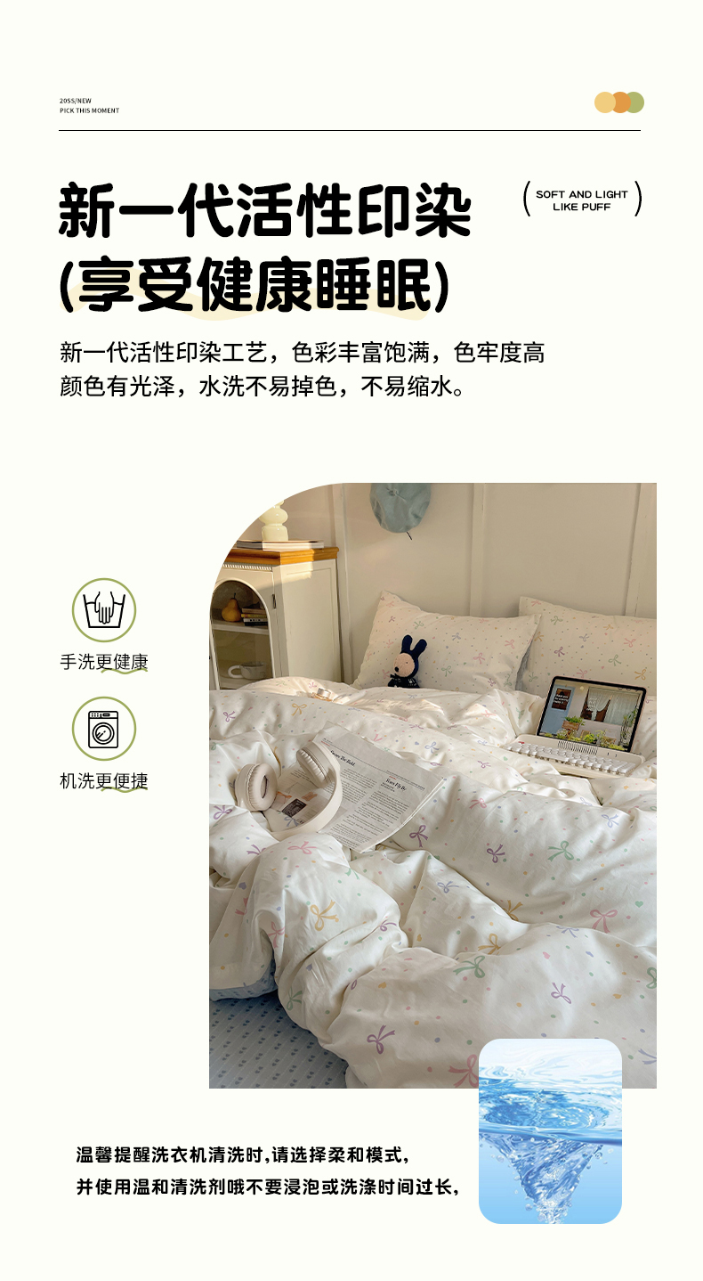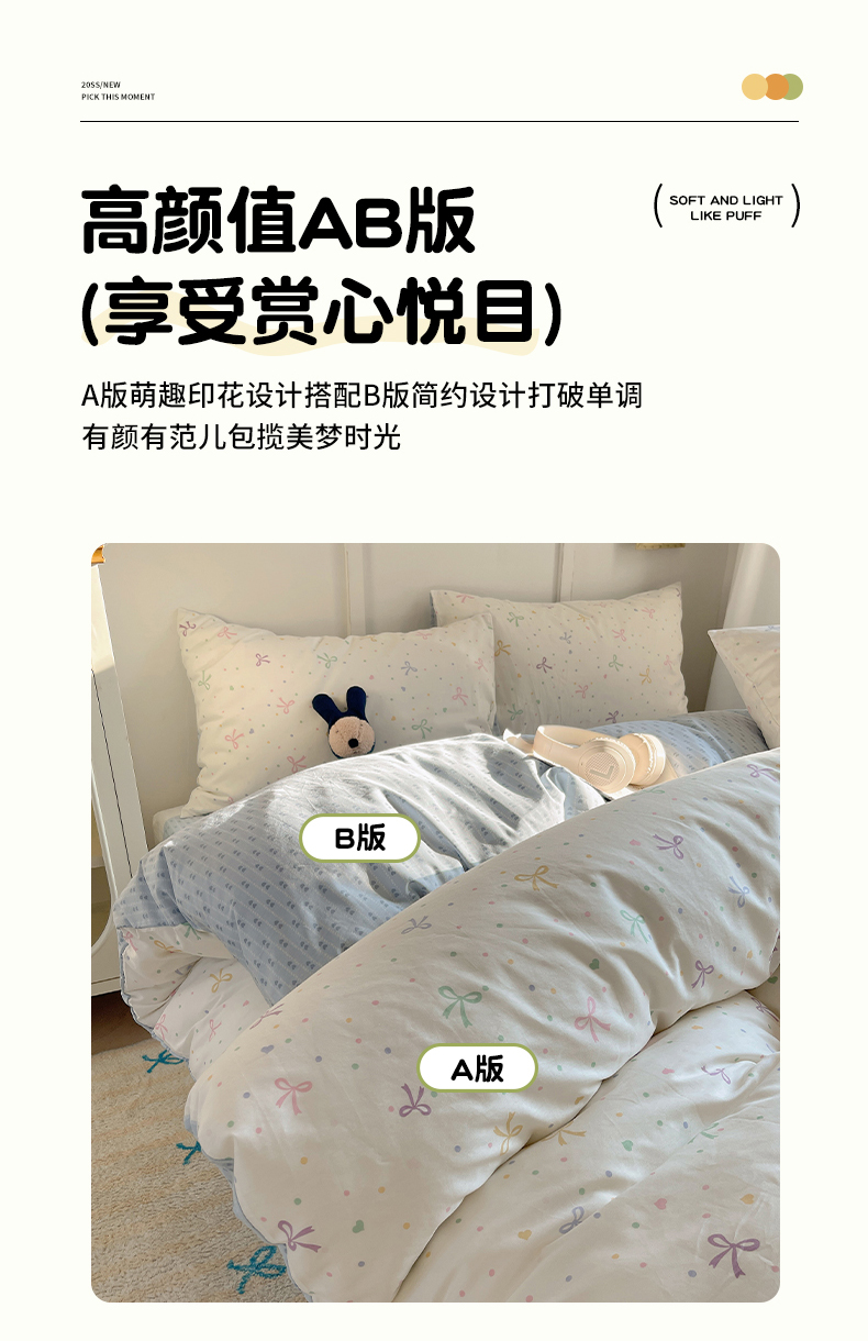 (总)瑞莱 2026新款A类全棉纯棉有氧双层纱四件套,白熊小姐,彩色木马,淡彩花笺,费尔岛小熊,焦糖奶汪-桔,焦糖奶汪-绿,萌星,苹果星星人,小樱桃,樱桃画报