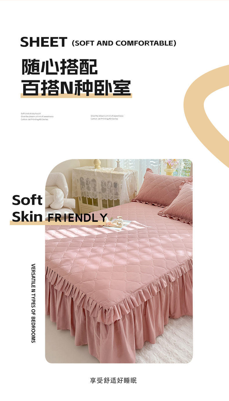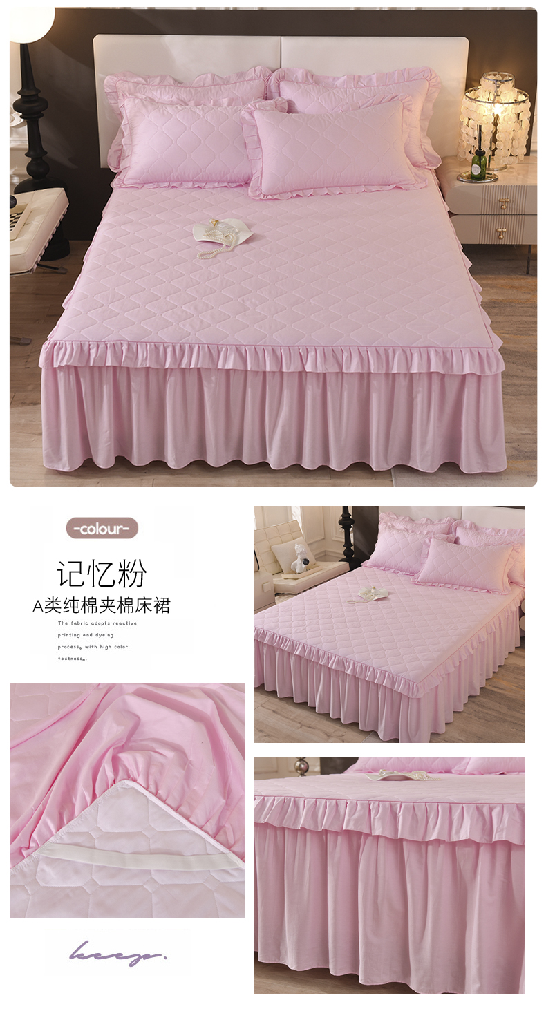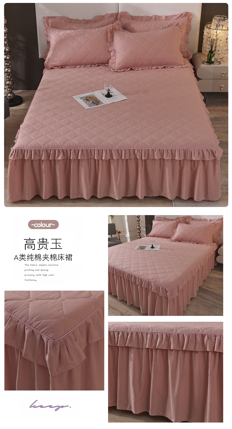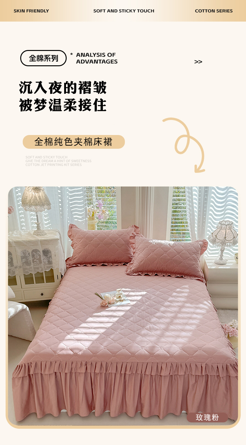 (总)美达家纺 2026新款13372全棉夹棉纯色床裙四件套,玫瑰粉,木槿紫,浅砂灰,豆绿,高贵玉,灰紫,记忆粉,经典灰,魅力驼,米白,浅兰,绅士绿