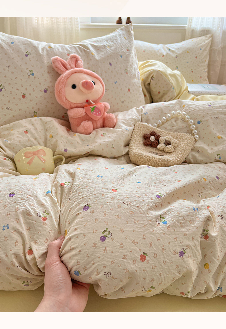 当前位置: 91家纺网 > 商品网购 > 床品套件 > 四件套 > 水洗棉四件套 > 优佳优品 【提供买家秀】2026新款加厚水洗仿棉A类印花四件套 缤纷莓果
