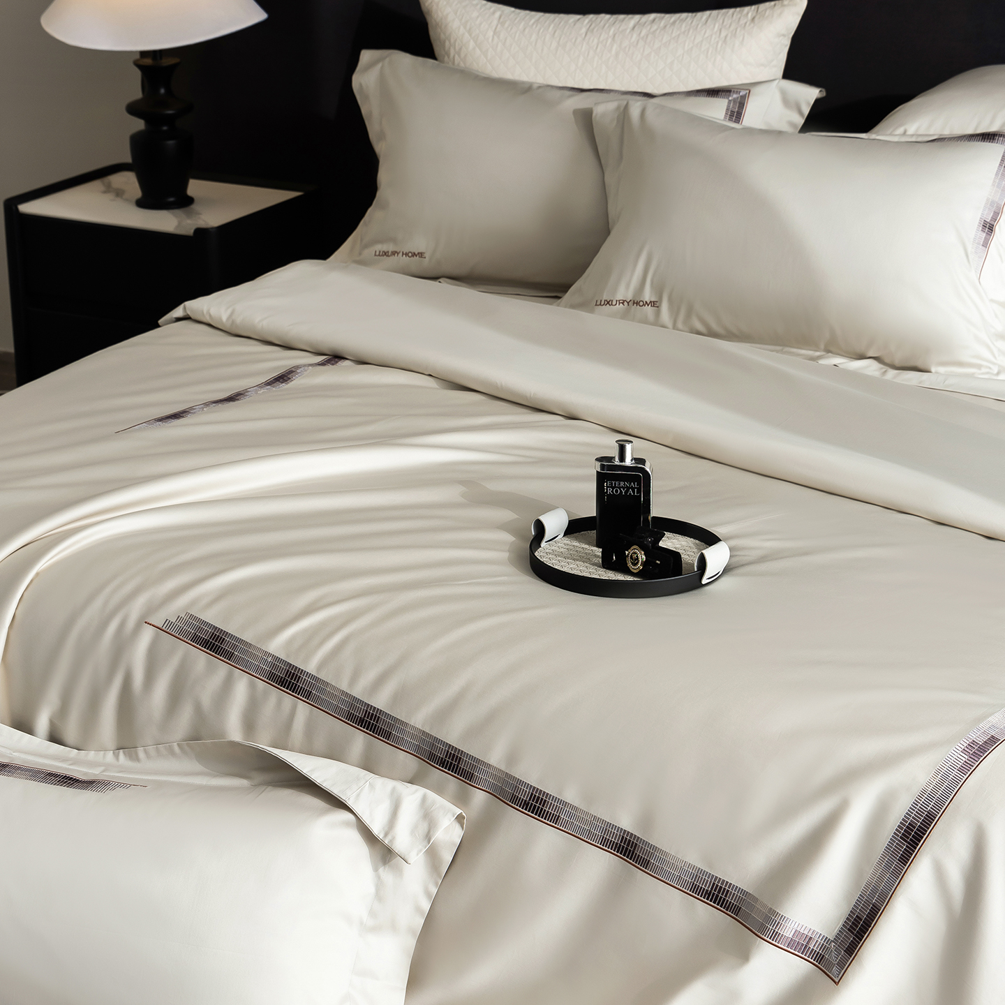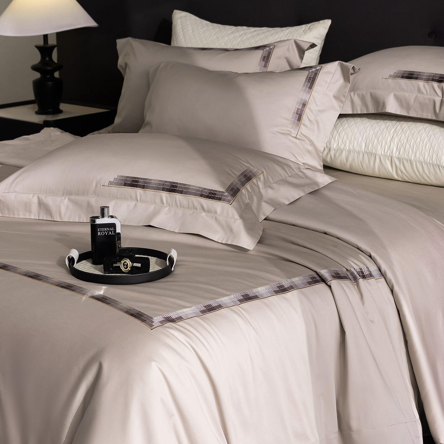 时亿家居 2026新款100支全棉纯棉绣花四件套-至简逸品系列 逸品-卡其
