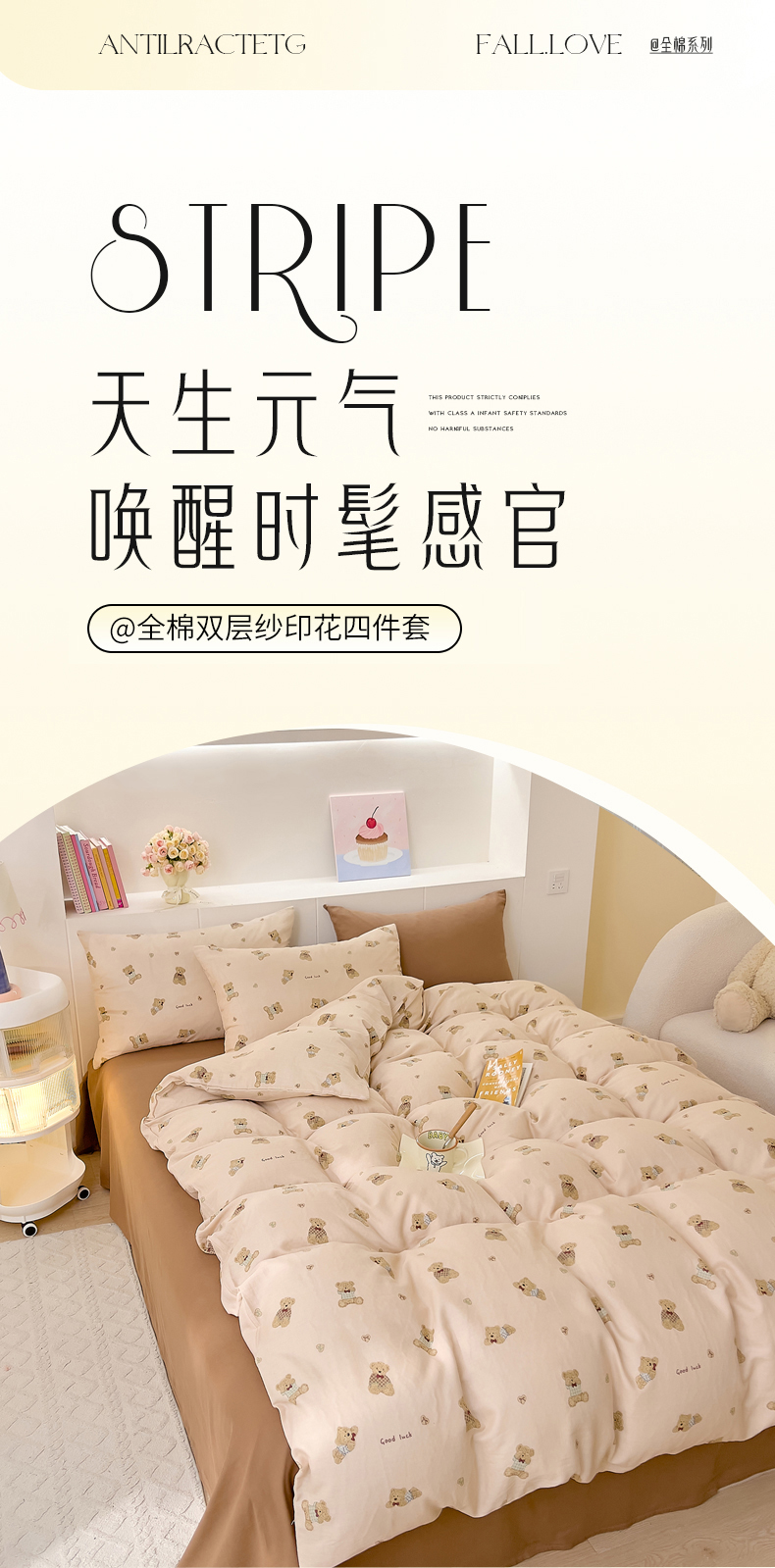 当前位置: 91家纺网 > 商品网购 > 床品套件 > 四件套 > 双层纱四件套 > DoDo 兜兜 2026新款全棉纯棉小温暖双层纱四件套【可定做尺寸】可可熊