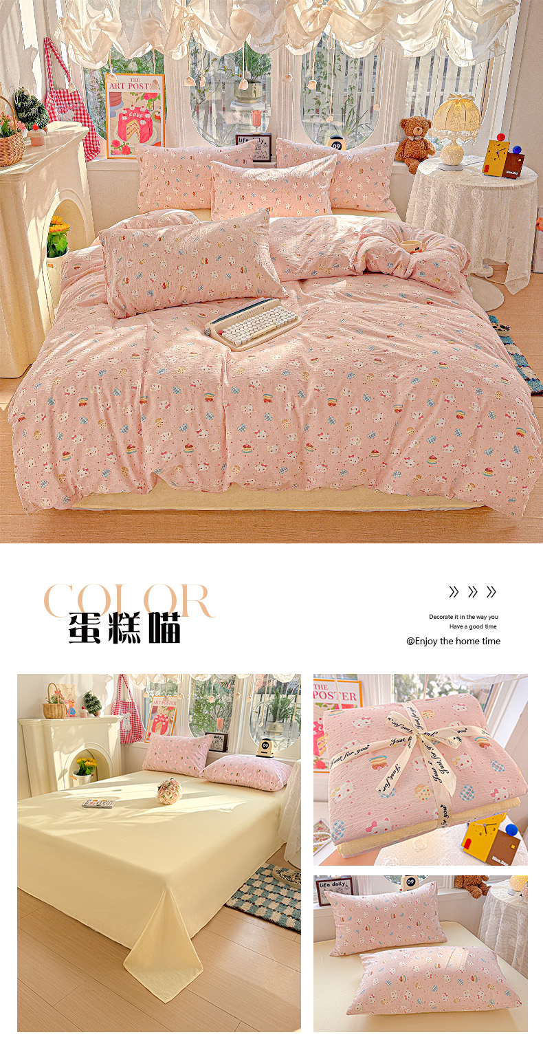 当前位置: 91家纺网 > 商品网购 > 床品套件 > 四件套 > 双层纱四件套 > 朵朵家纺 2026新款云感木棉皱皱纱双层纱印花四件套 星星人