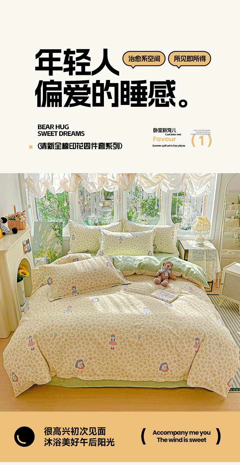 当前位置: 91家纺网 > 商品网购 > 床品套件 > 四件套 > 全棉普通四件套 > 恩泽家纺 2026春夏新款全棉纯棉12868印花四件套(提供买家秀,预留缩水率) 宅宅女孩